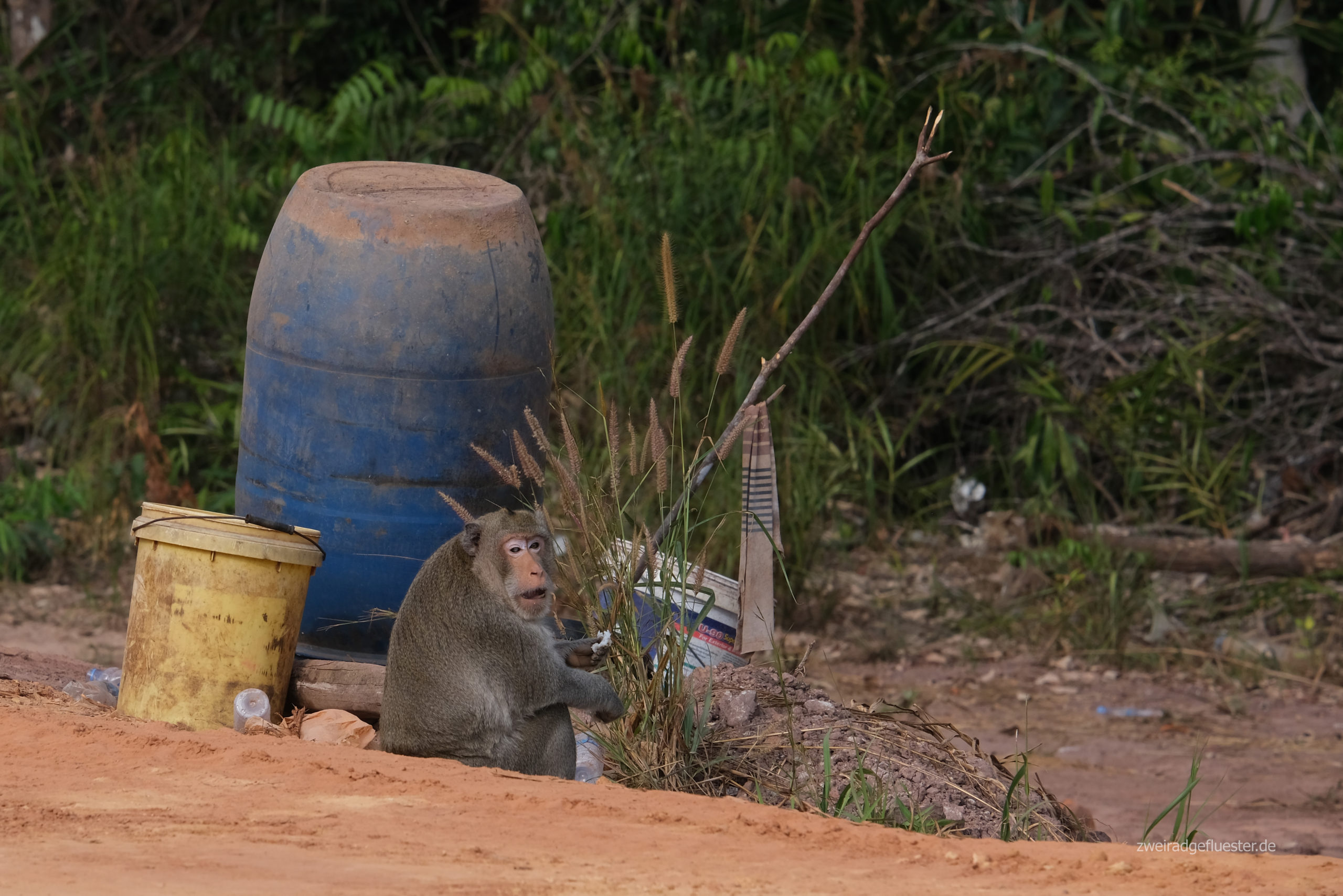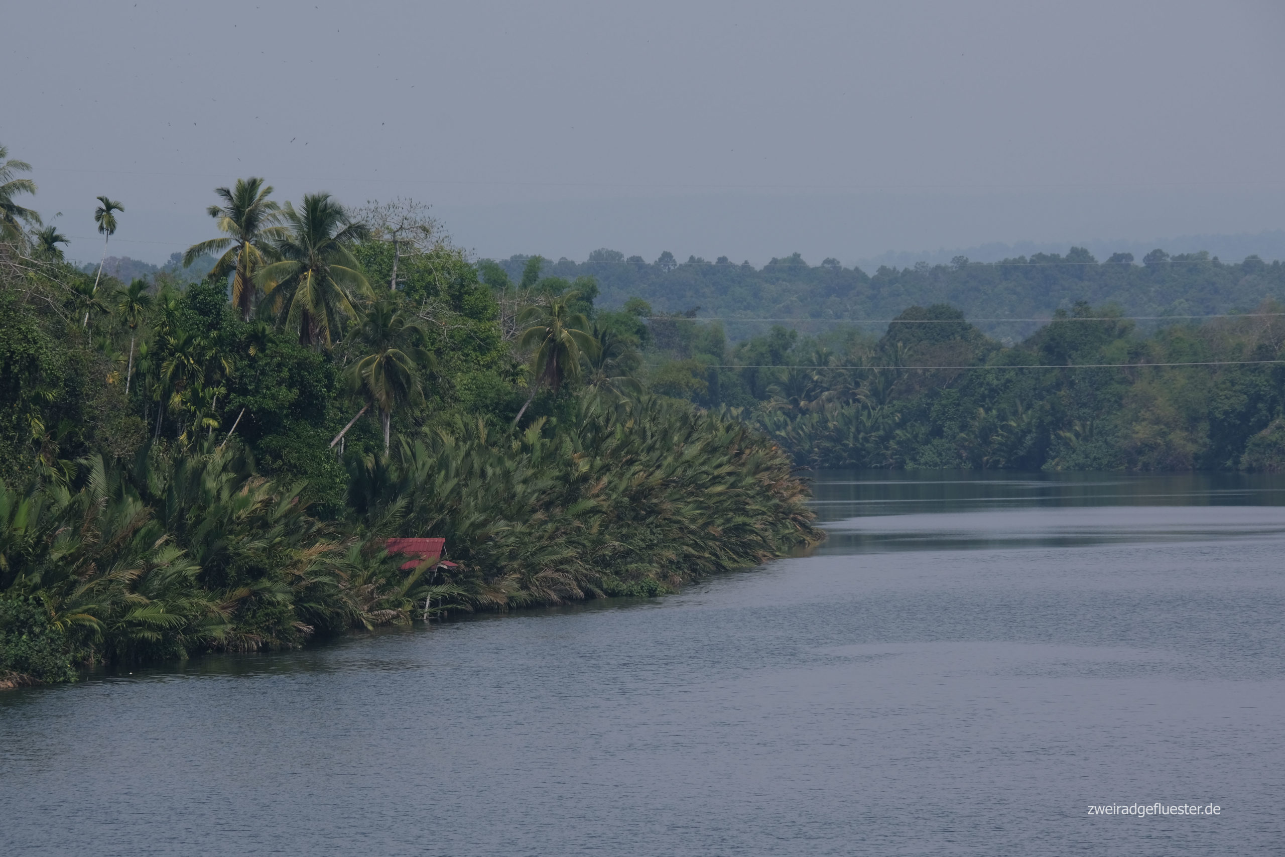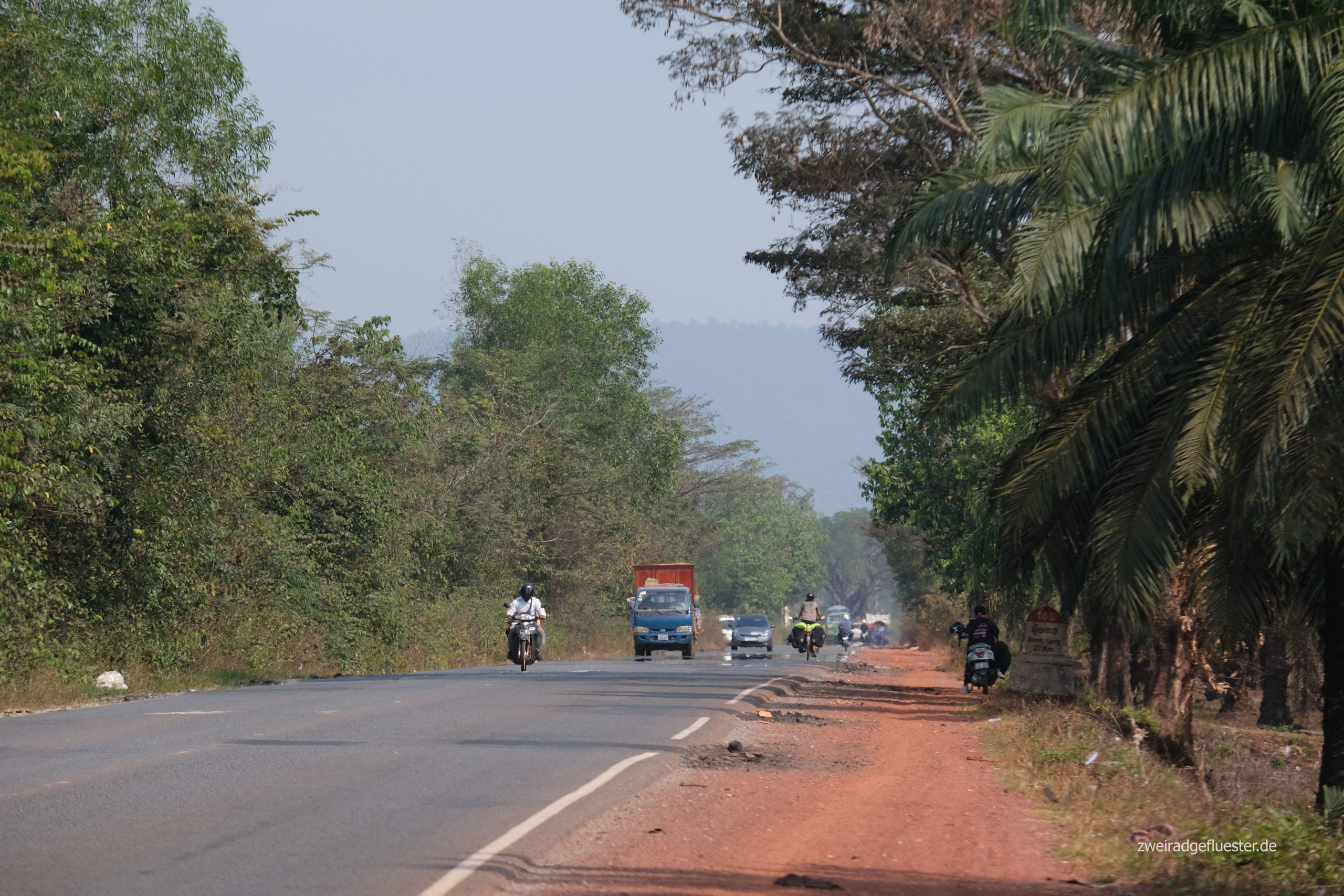Die Bergkette im Südwesten Kambodschas gilt als eines der größten und noch unberührtesten Dschungelgebiete Südostasiens. Die Straße ist zunächst in einem guten Zustand, sodass wir ganz gut vorankommen. Es ist herrlich dem Regenwald, der die Straße umgibt, in der Morgenstimmung zu lauschen.