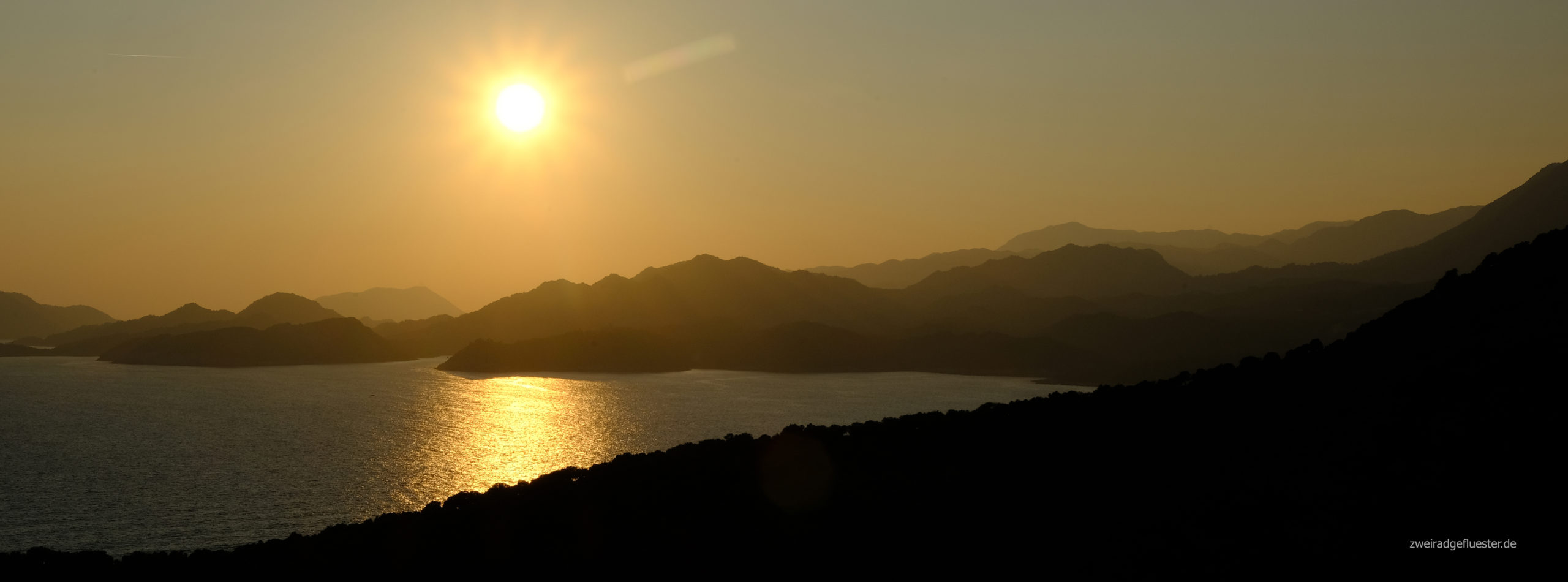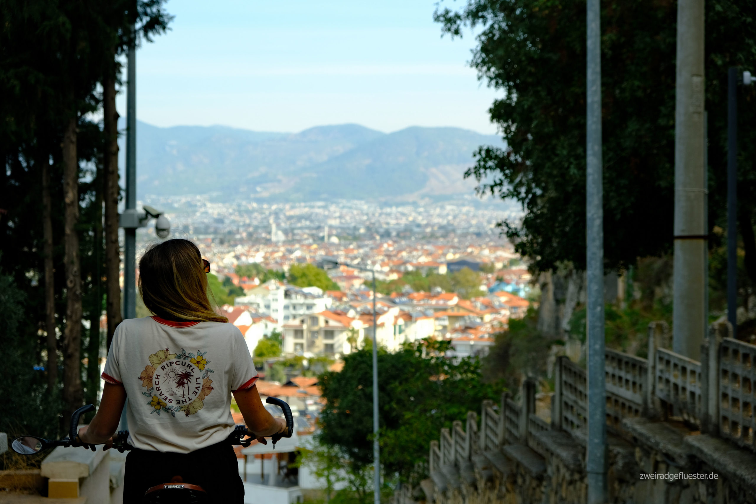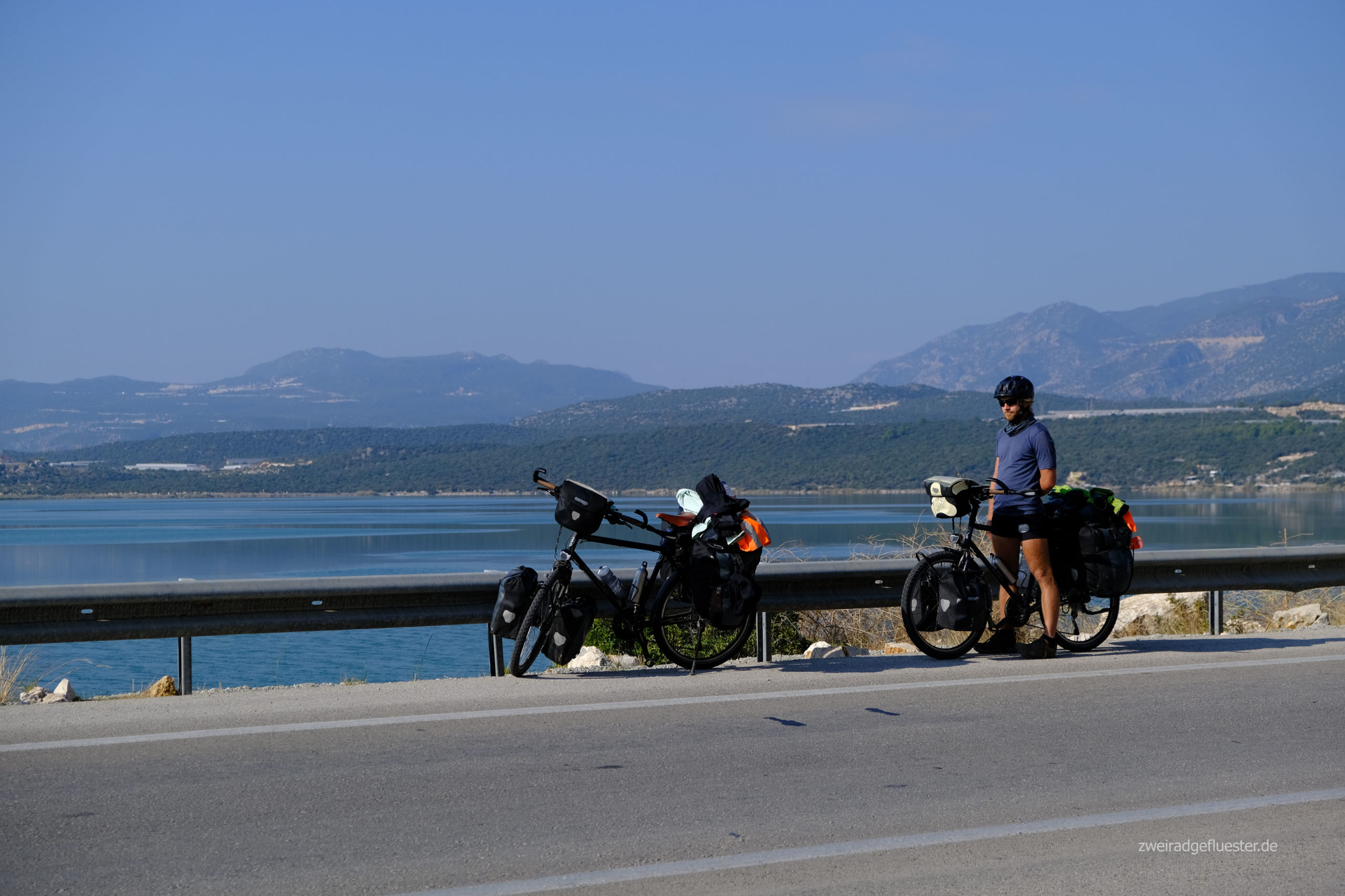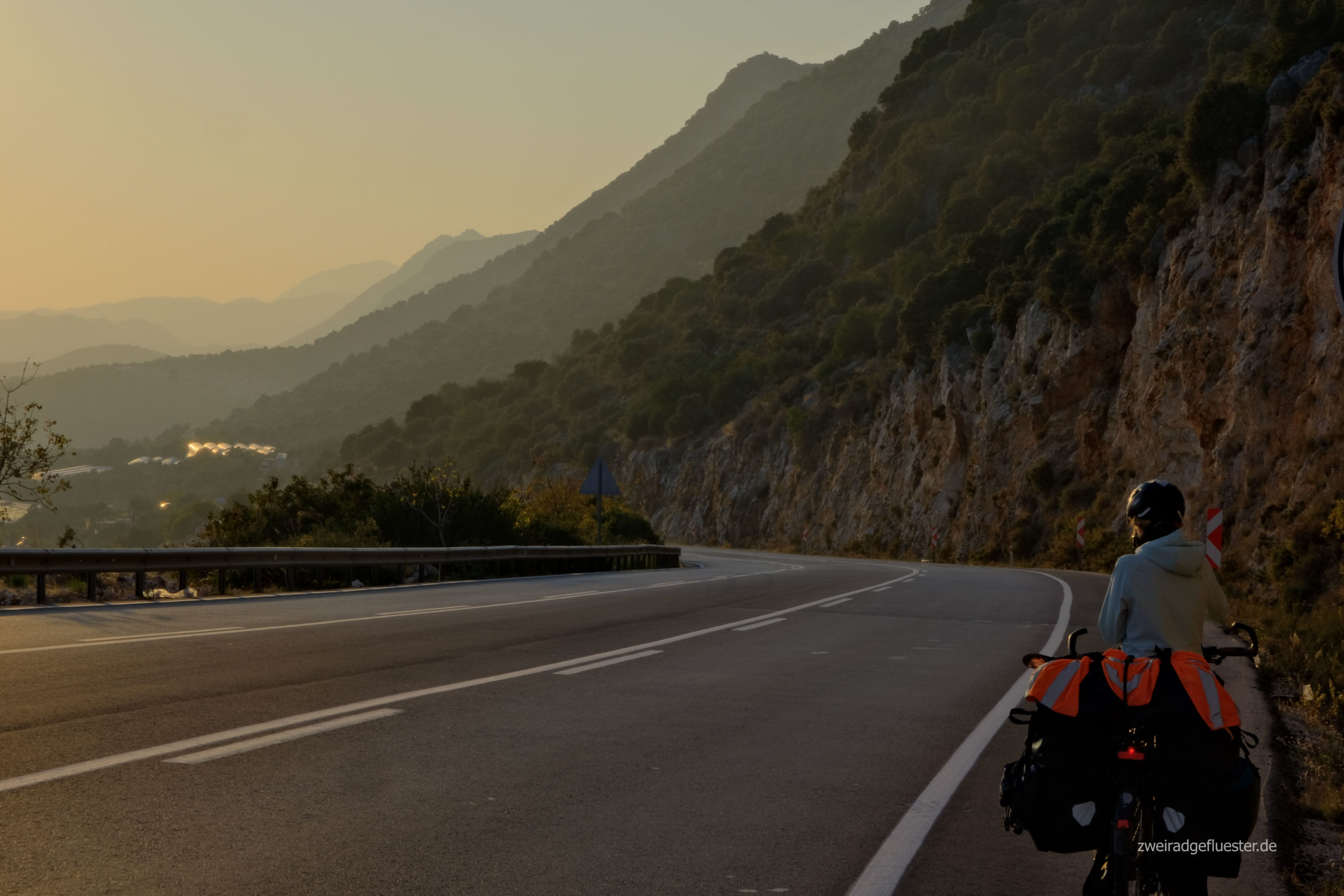 Die Bergetappe hin zum Mittelmeer steckt uns noch immer gut in den Beinen, denn mit der Erschöpfung ist es ja so eine Sache, man spürt sie erst richtig, wenn man mal zur Ruhe kommt. Entsprechend ausgelaugt sitzen wir nach unseren zwei Tagen Pause wieder auf den Rädern, als wir Fethyie verlassen. In dieser Verfassung stehen wir an einer Kreuzung und müssen uns entscheiden, wie wir die vor uns liegende Landzunge überwinden wollen. Nehmen wir den flacheren Weg über die Bundesstraße oder doch die kleine, steile Bergetappe. Nunja wir entscheiden uns mal wieder für die schweißtreibende, anstrengende aber auch wunderschöne Variante.