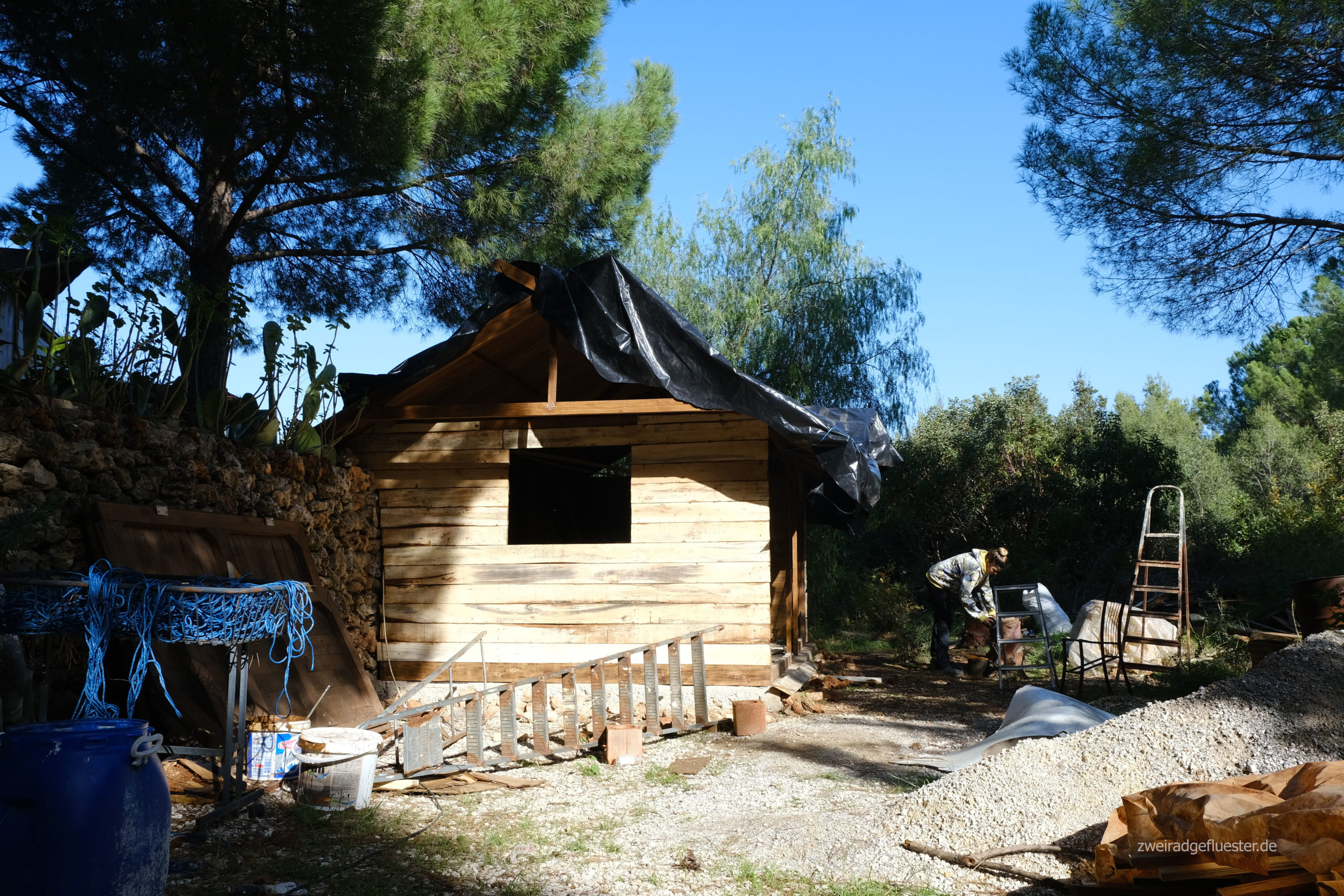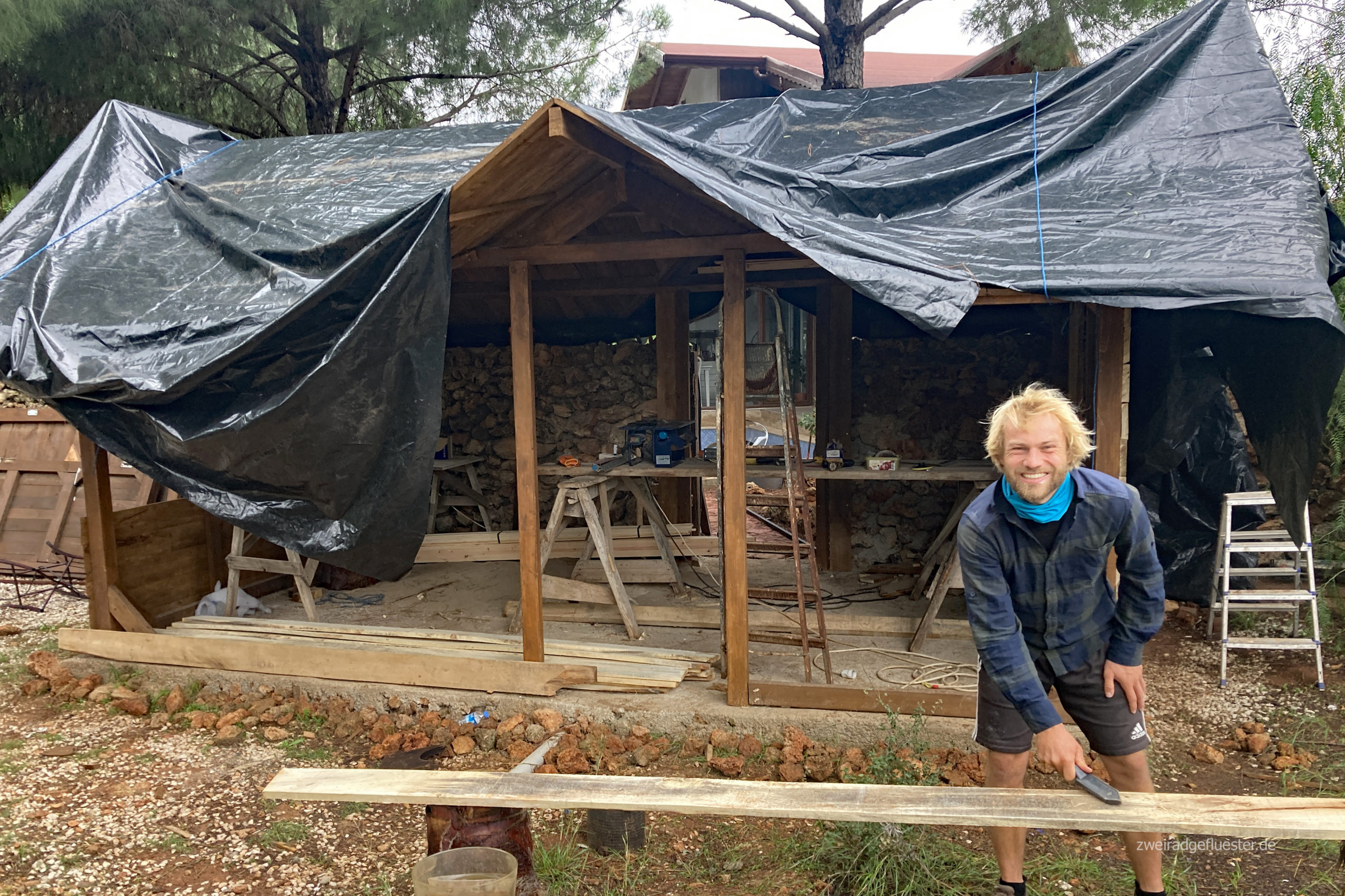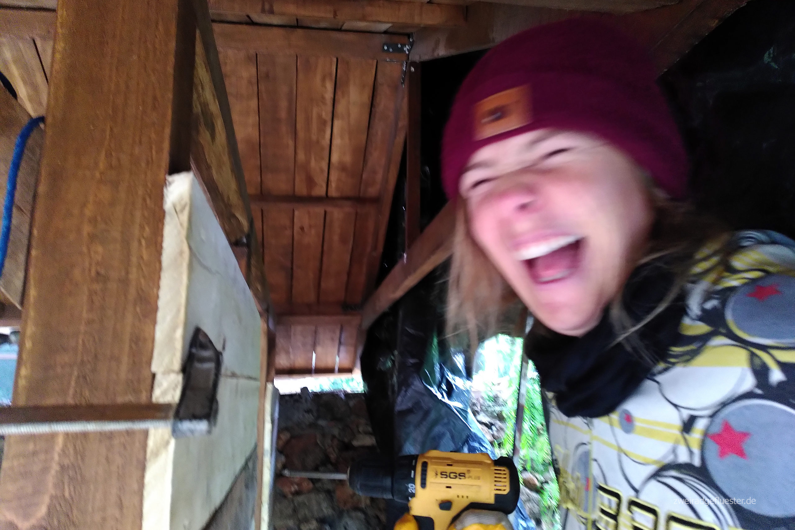 Es hätte so schön sein können. Denn wenn wir tagsüber mit Ben dabei waren unserer Arbeit nachzugehen, hatten wir dabei richtig viel Spaß. Schleifen, Sägen, Hämmern und Schritt für Schritt entsteht ein kleines Holzhaus. Unterbrochen wurden diese Momente dann aber leider oft durch eine völlig neue Aufgabenverteilung von der Geschäftsleitung. So wurden wir einmal aus der Arbeit gerissen, um im Wald Zweige zu sammeln, damit der Sohn daraus etwas basteln kann. Danach sollten wir einen Schrottplatz von einer Ecke des Gartens in eine andere Ecke räumen, weil der Großvater hier irgendwann, vielleicht ein Vogelhaus hinhaben möchte. Am Abend wurden wir dann gefragt, warum wir nicht so viel am Holzhaus geschafft haben.