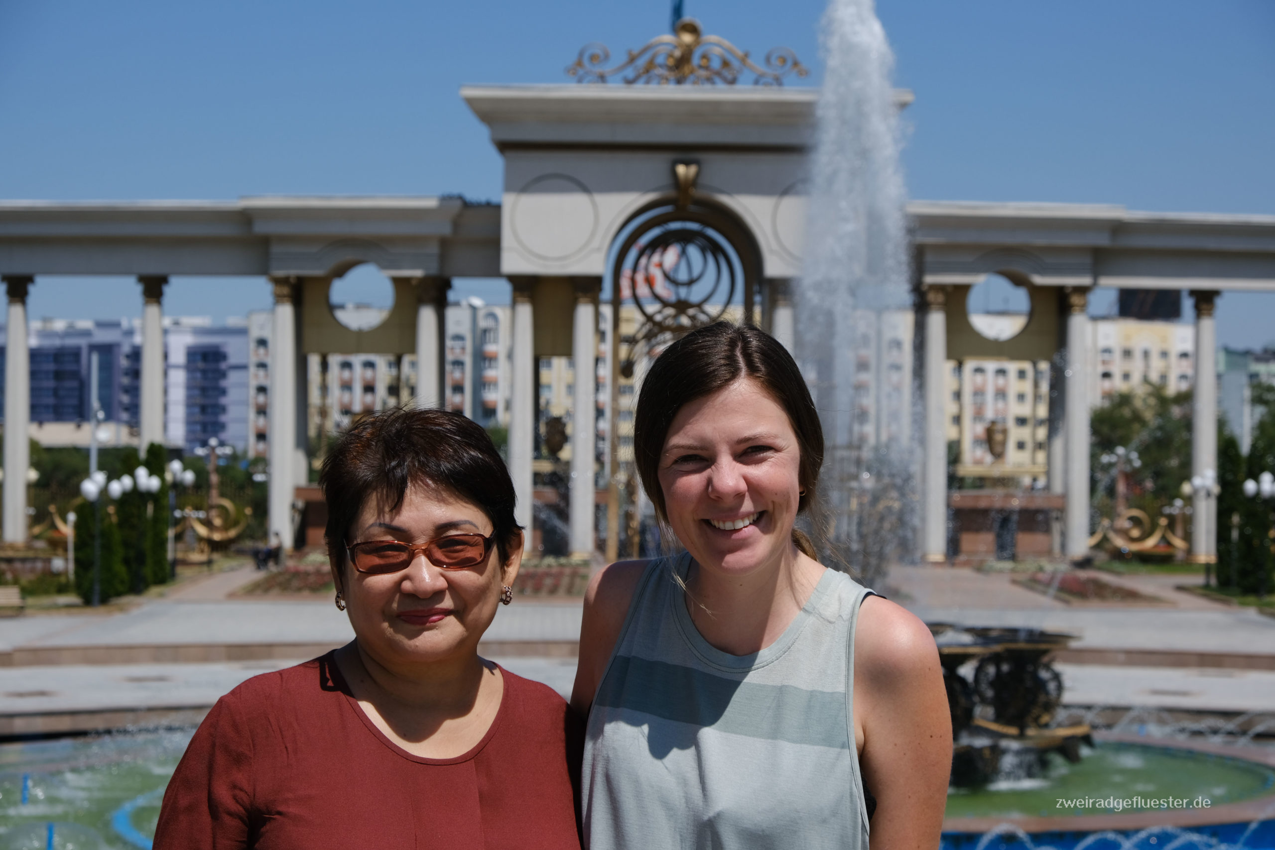 Nachdem wir uns ausgeschlafen haben, erkunden wir die Stadt auf dem Rad. Isi war ja vor sieben Jahren schon einmal für ein Praktikum hier und es hat sich doch einiges getan. Tourist:innen sind nicht mehr ganz so selten wie damals, es gibt viele neue Straßen und gemütliche Restaurants. Wir verbringen einen netten Nachmittag mit Isis ehemaliger Gastmama Aiman, die uns viel über die Situation hier erzählen kann. Was die Löhne und die echte politische Teilhabe der Menschen angeht, hat sich nämlich leider in den vergangenen Jahren nicht wirklich was getan, aber einige Kasach:innen sind mutig genug, sich trotz der Risiken für mehr Mitbestimmung und Demokratie einzusetzen. Wir hoffen, dass dieser Einsatz in Zukunft mehr Früchte tragen wird als bisher.