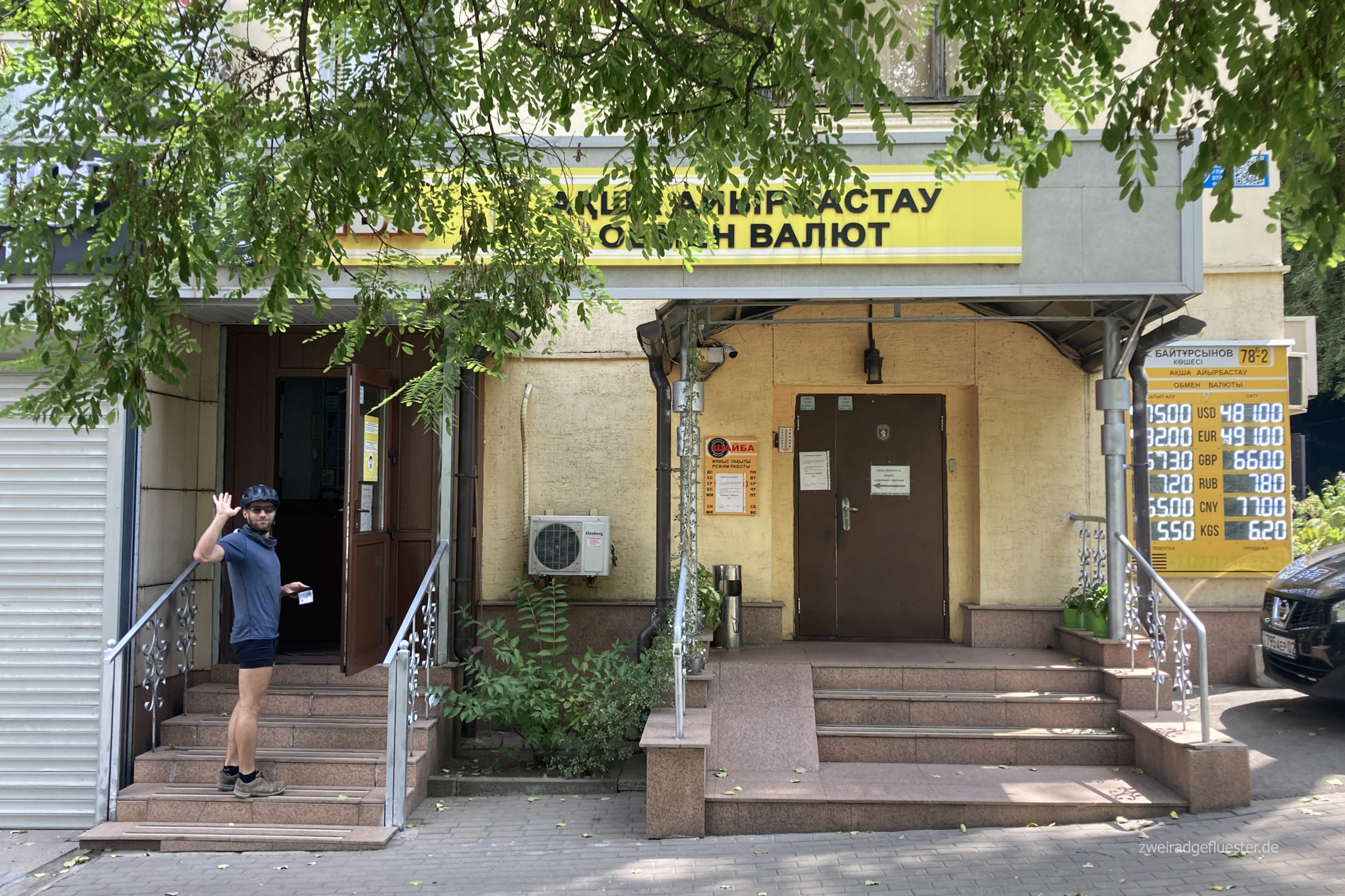 Doch bevor wir die größte Stadt Kasachstans verlassen, heißt es noch schnell alle Besorgungen erledigen. Da wir dieses Mal direkt in der größten Metropole angekommen sind, haben wir keine Ahnung wie die Versorgung in den kleinen Dörfern ist. Eine Sache, die wir beim Überradeln einer Grenze sonst relativ schnell sondieren können. Durch unser Beamen von Iran nach Zentralasien in rasanter Geschwindigkeit, haben wir also diesmal keinen blassen Schimmer: Brauchen wir Essensvorräte? Wie oft kommt man an Wasser? Kann man mit Karte bezahlen und wie viel Bargeld brauchen wir eigentlich?