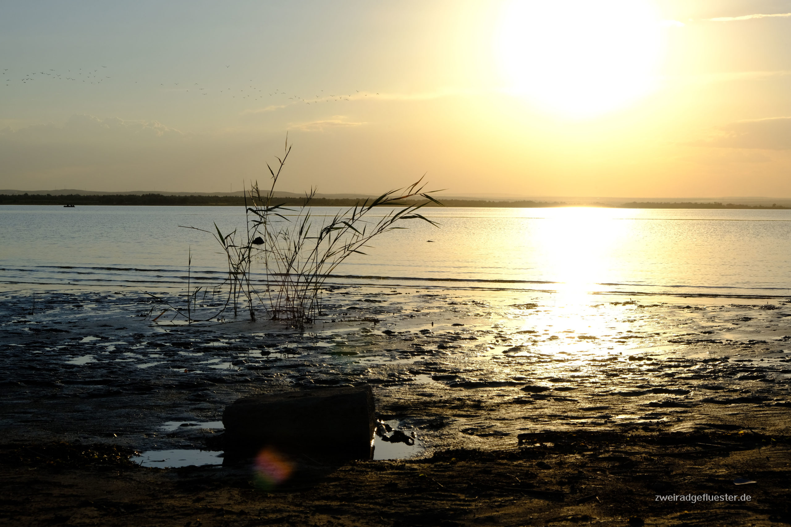 Am Abend genießen wir das Licht der Sonne am See, die schneebedeckten Berge im Süden und die nicht enden wollende Weite der Steppe im Norden. Doch am meisten genießen wir es in einem Gewässer einfach so baden gehen zu dürfen, auch wenn das mit dem Baden nicht so einfach ist, bei diesem sehr flach verlaufenden, abflusslosem See.