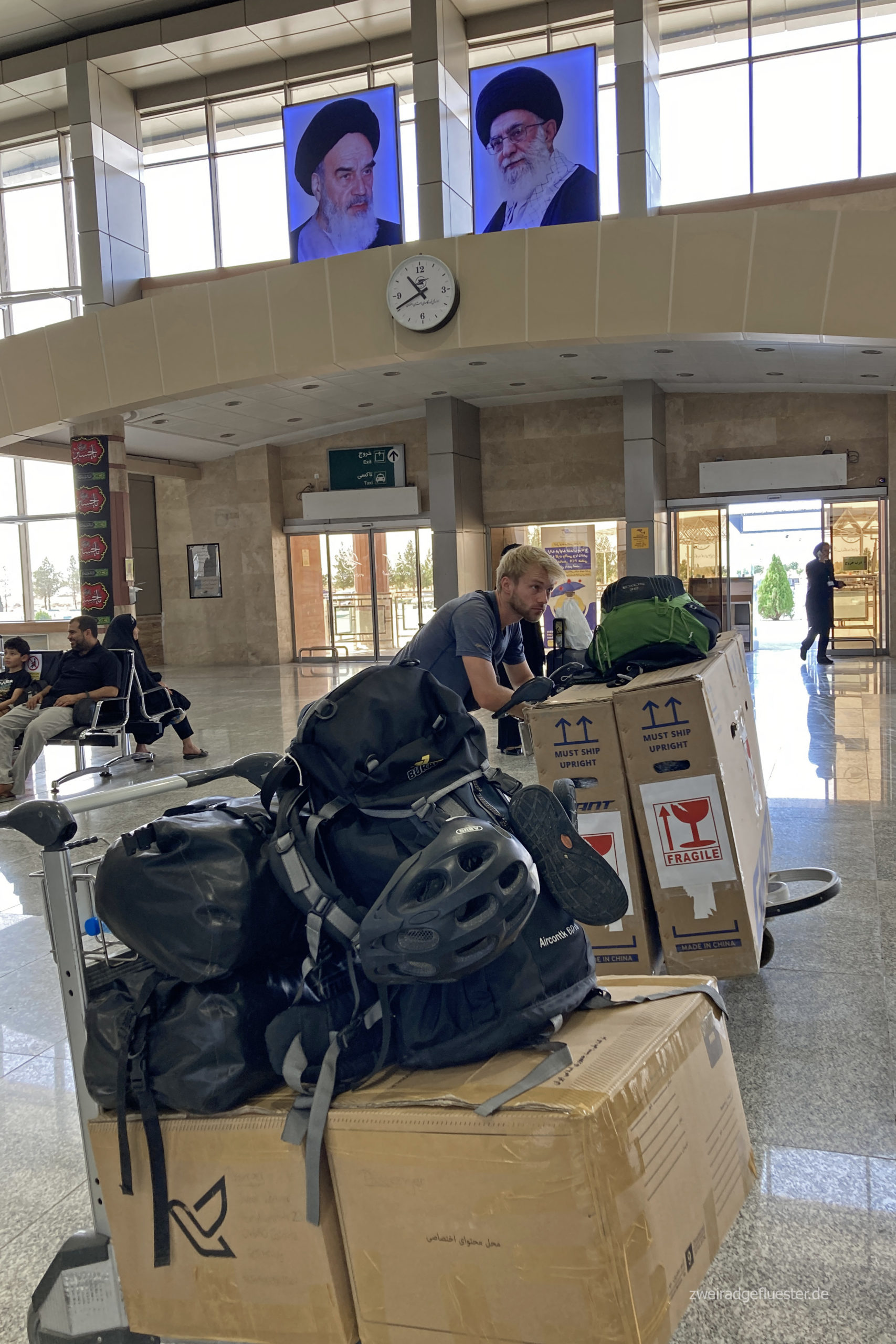 Es ist schon irgendwie irre, vor nicht einmal 24 Stunden waren wir noch mitten in Iran. Vor dem Flug waren dann doch noch einige Dinge zu regeln und das Gedanken-Karussell, was so alles schiefgehen kann, lief wohl bei uns beiden permanent im Hinterkopf auf Hochtouren. Netterweise hat uns das Sarvhostel in Esfahan einen Transport zum Flughafen organisiert und so saßen wir nach dem Frühstück auch schon neben einem iranischen Opi in seiner Klapperkiste und unser ganzes Hab und Gut lag hinten auf der Ladefläche. Am Flughafen hieß es dann warten, warten und nochmals warten. Unsere Räder waren etwas zu schwer und so kam der Chef höchstpersönlich vorbei, um sich mehrfach für die zusätzliche Gebühr, die wir deshalb zahlen mussten, zu entschuldigen. Vielleicht ist das ein gutes Beispiel für den Kontrast, den wir schon allein zwischen den beiden Flughäfen wahrgenommen haben. Dennoch waren wir beide auch sehr beruhigt, als die ganzen Kontrollen in Esfahan durch waren und vor allem als der Flieger dann endlich abgehoben ist. Damit haben wir nicht nur unsere Freiheit zurückerlangt, sondern es sind uns wohl auch einige Steine vom Herzen gefallen.