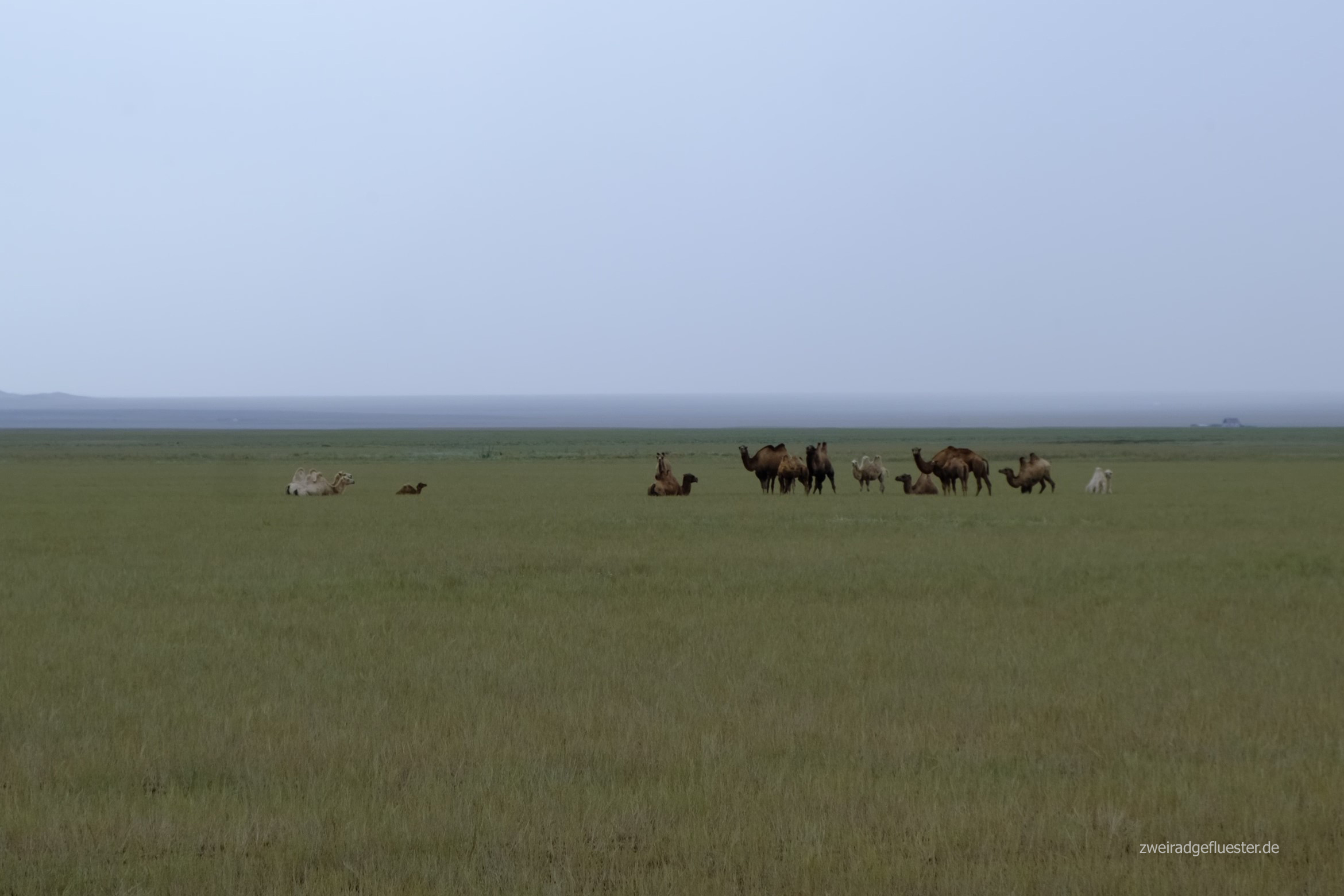 Nach dem entspannten Tag am Fluss heißt es nun so richtig hoch strampeln. Bis zur Grenze haben wir einige Höhenmeter zu bewältigen und es regnet ohne Ende. Doch das stört uns wenig, denn schon nach kurzer Zeit entdecken wir die ersten Kamele am Horizont. Unsere Augen strahlen und jetzt haben wir so richtig das Gefühl, dass wir in Kasachstan und damit auch in den Weiten Zentralasiens angekommen sind und freuen uns auf neue Abenteuer.