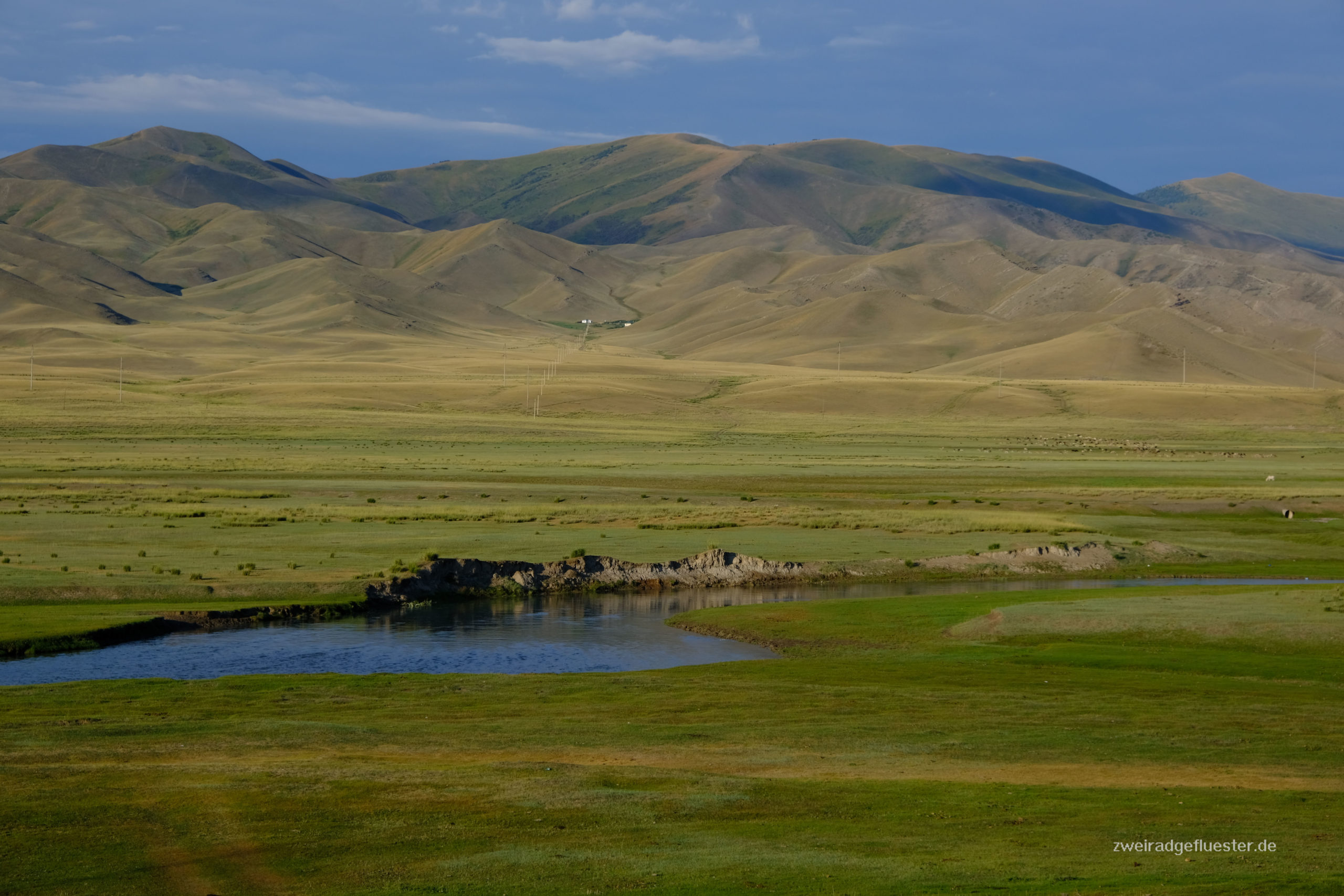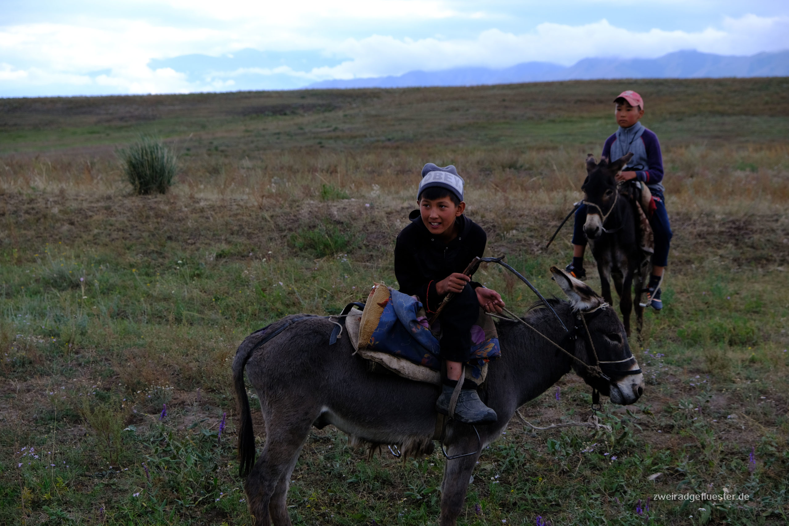 Nach der flachen, steppenartigen Landschaft kommen wir nun langsam in bergigere Gefilde. Der erste Anstieg seit langem lässt unsere Beine wieder wach werden und die Bergwelt lässt unsere Herzen doch immer wieder höherschlagen. Wir winden uns nach oben und in der Abenddämmerung erreichen wir die kleine Hochebene.