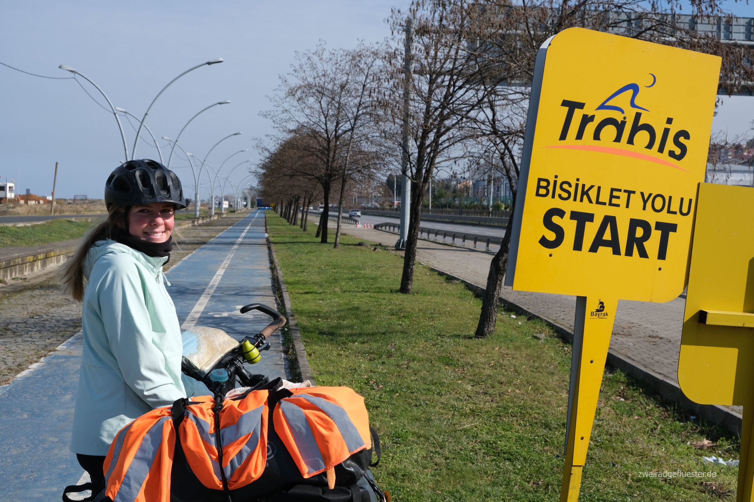 Es ist soweit! Der Tag an dem wir uns wieder auf die Räder schwingen ist gekommen. Irgendwie sind wir seit gestern Abend ganz schön aufgeregt, aber das Wetter meint es heute gut mit uns und die Sonne strahlt. Mitten im Winter hätte das ja auch ganz anders sein können. Die ersten Meter fühlen sich noch ganz komisch, ungewohnt und wackelig an. Nach nicht mal 5 Minuten Fahrt bleibt auch noch eine der Hintertaschen an einer Leitblanke hängen und die Aufhängung knackt durch. Das geht ja gut los…