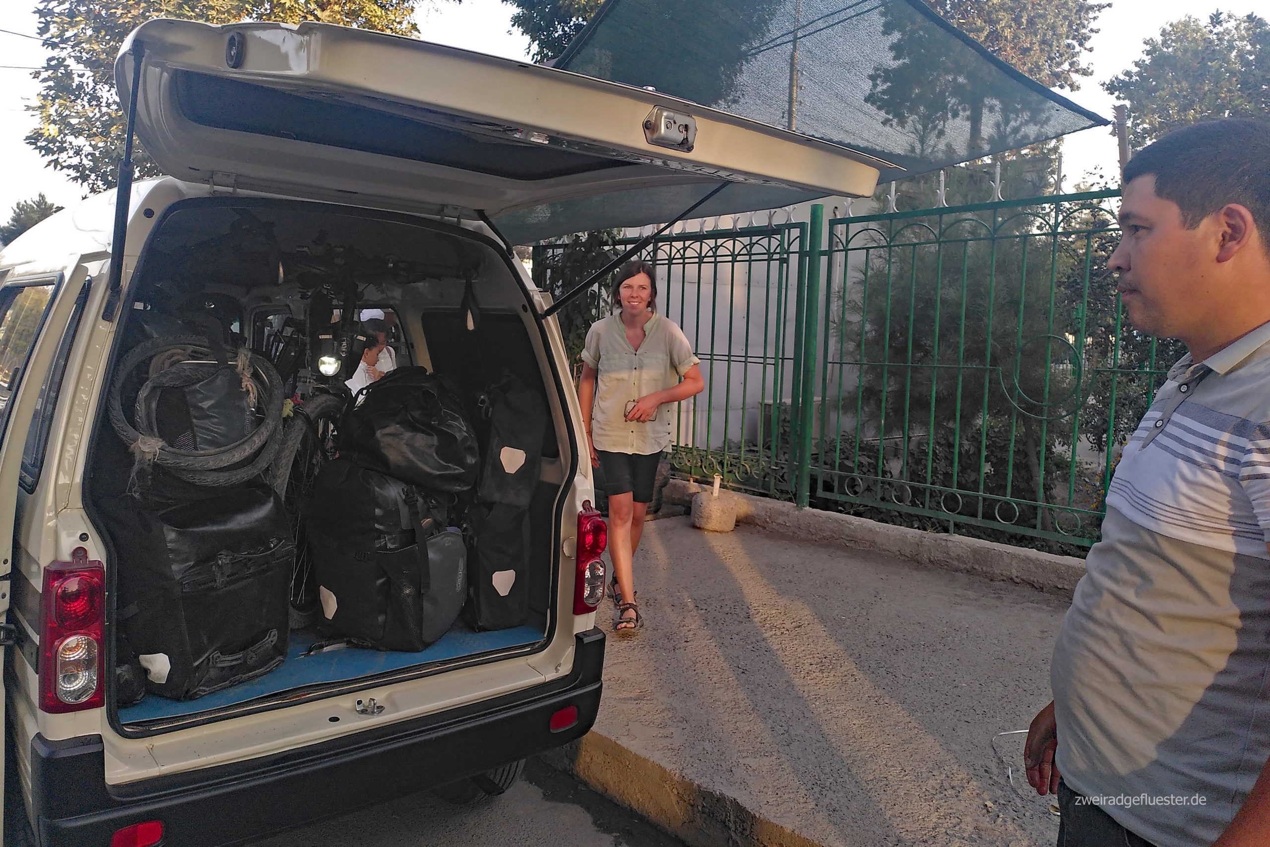 Wieder habe wir es eiliger, als wir es mit unseren Rädern schaffen können oder Usbekistan ist uns einfach zu groß für 30 Tage Visafreiheit und der Zauber, alles mit dem Rad zurückzulegen, ist seit unserem Flug leider auch verflogen. So finden wir uns also auf dem Bahnhof von Margilon wieder und hieven schon bald unsere Räder in den alten Wagon. Ein Ticket für das Fahrrad gibt es nicht, aber von anderen Reisenden wissen wir, dass es irgendwie möglich ist, die Räder mitzunehmen. Es bleibt also immer wieder spannend.