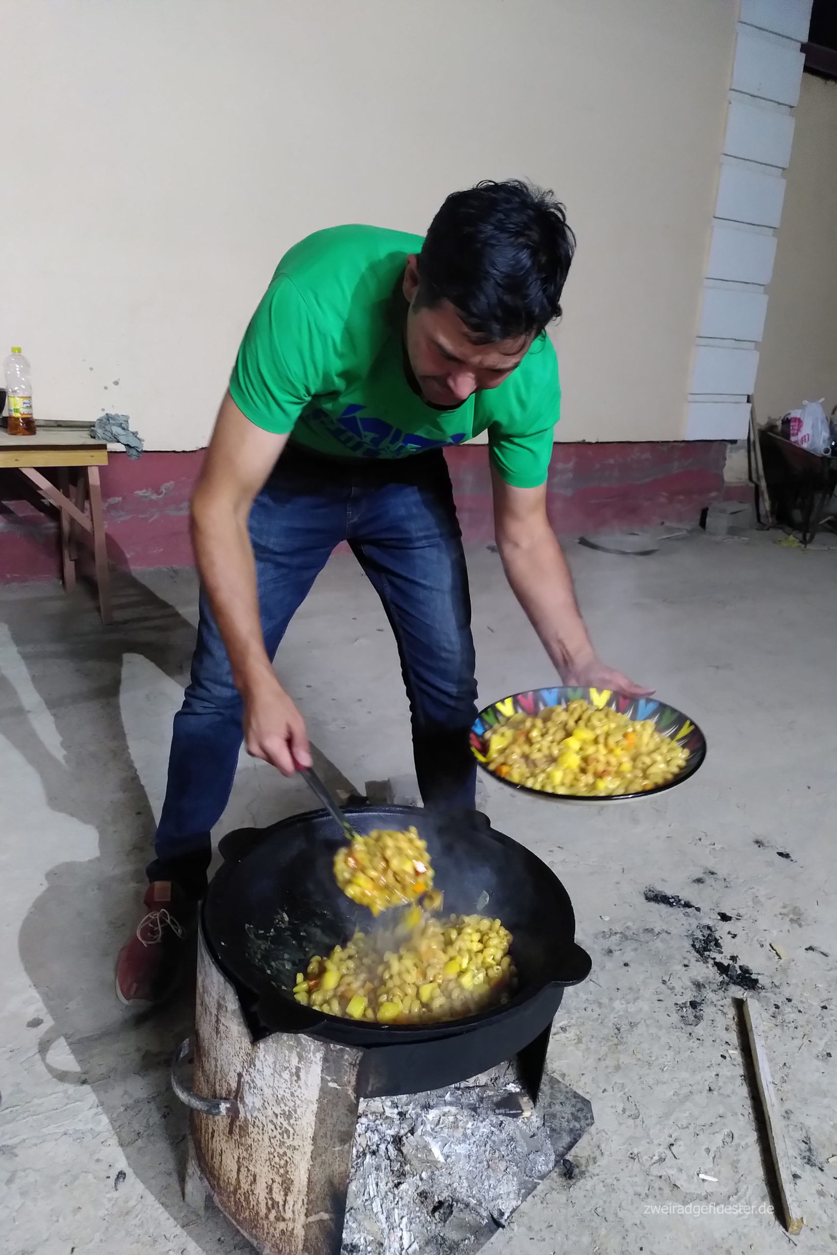 Am ersten Abend kommt Aybek vorbei und wir haben die Gelegenheit ihn persönlich kennenzulernen. Er kocht für alle im Feuertopf und wir essen gemeinsam, jedenfalls mit einem Teil der Leute. Es so schön zu sehen, dass es Menschen wie Aybek gibt. Was sollten all die Leute, die nicht zur Freude hier sind, sonst machen. Ein Zimmer in einem Gästehaus oder Hostel, sollte es noch verfügbar sein, kostet inzwischen unglaublich viel. Die Preise steigen, weil die Nachfrage explodiert und irgendwann ist halt alles voll. Auch für uns ist es mit der Spontanität also erstmal vorbei zumindest was das Unterkommen in größeren Städten und Zugfahrten angeht.