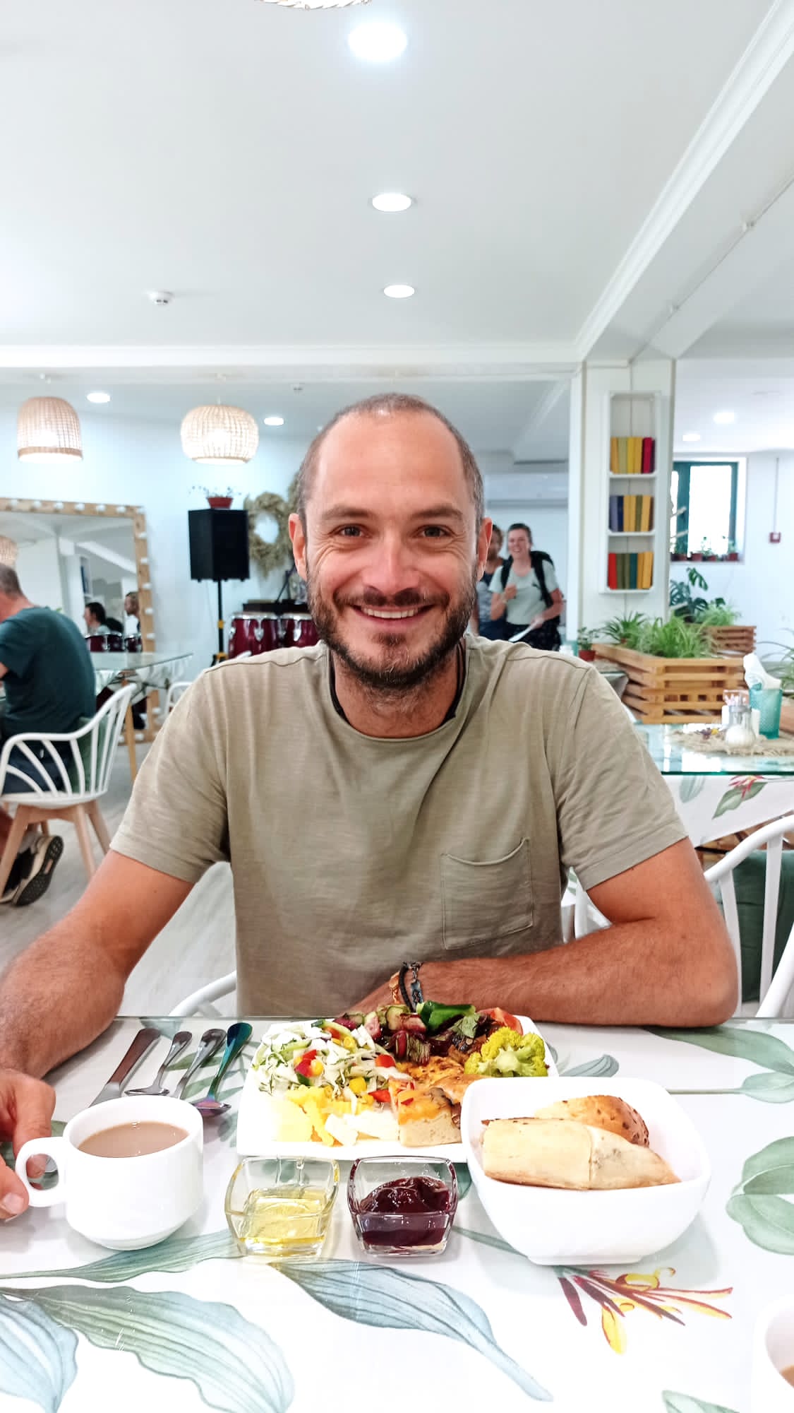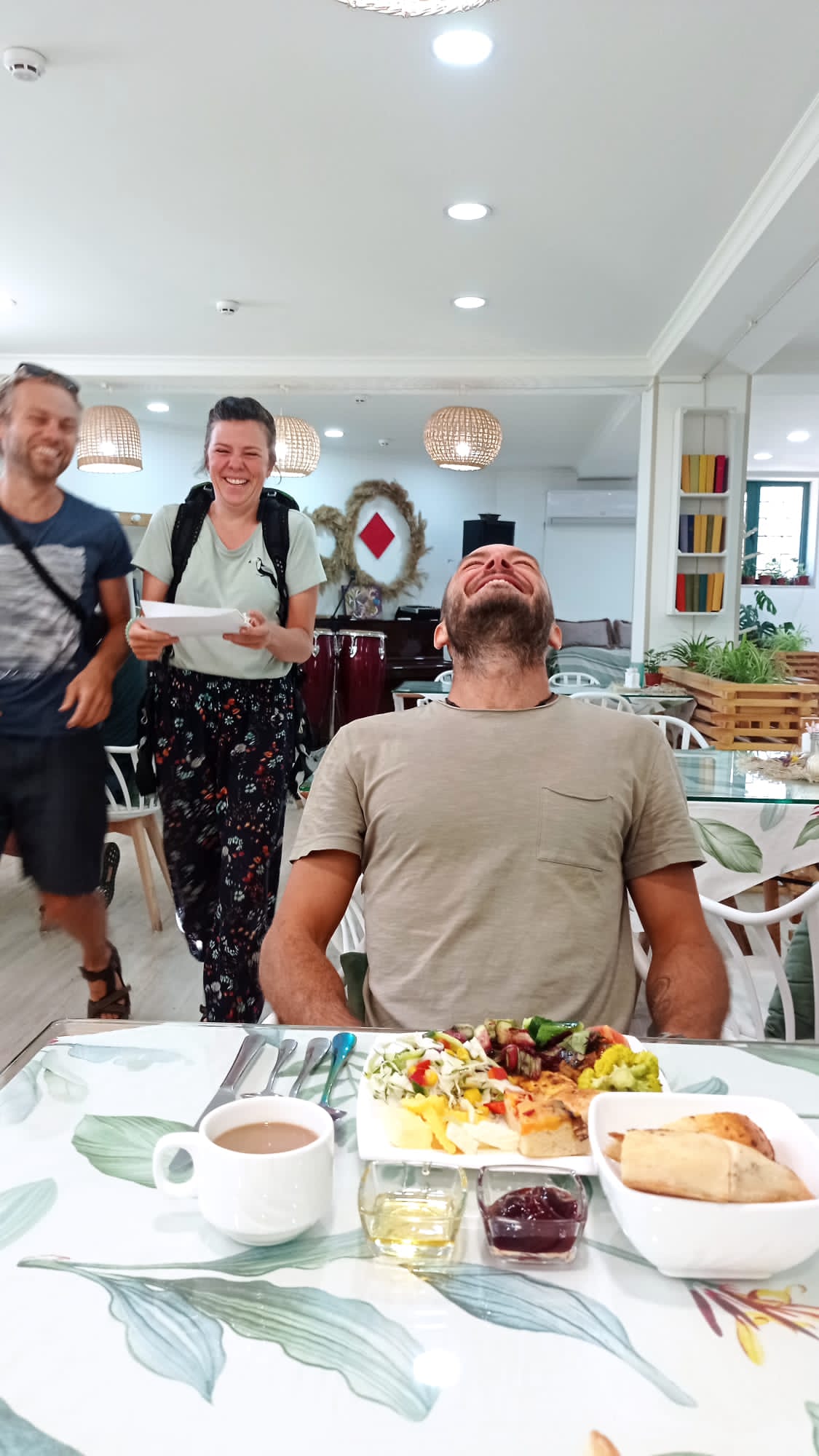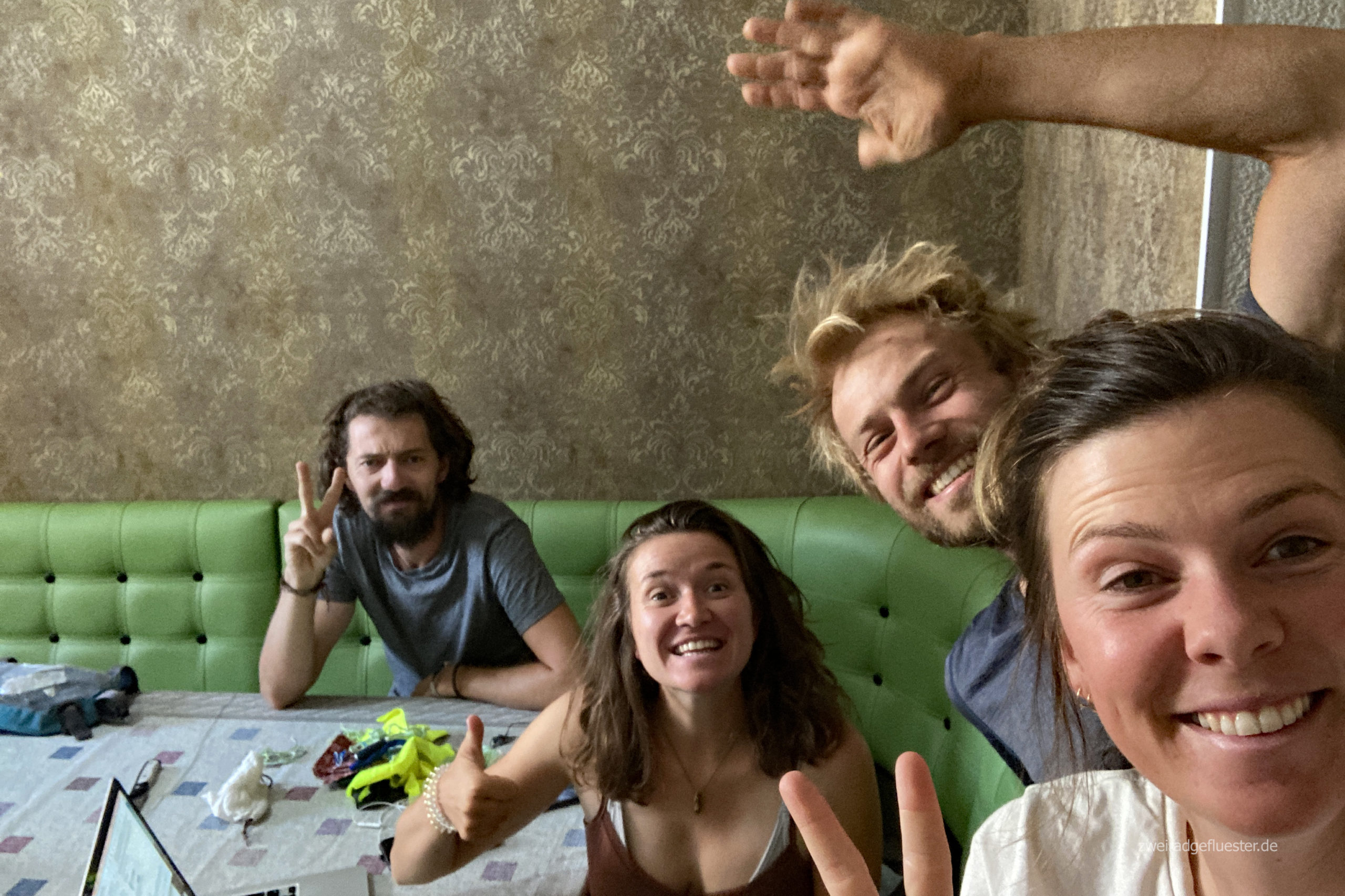 Als wir ankommen werden wir von Maksim begrüßt, er kommt aus Tajikistan und wartet gerade auf sein Visum für die UK. Außerdem begrüßen uns Pavel und Andre. Sie kommen beide aus Russland, sind mit dem Kriegsbeginn geflohen und leben jetzt hier, bis sie etwas anderes finden. Pavel erzählt uns, dass er zwischendurch noch in Indien und Vietnam unterwegs war und sich immer wieder neu erfinden muss(te).