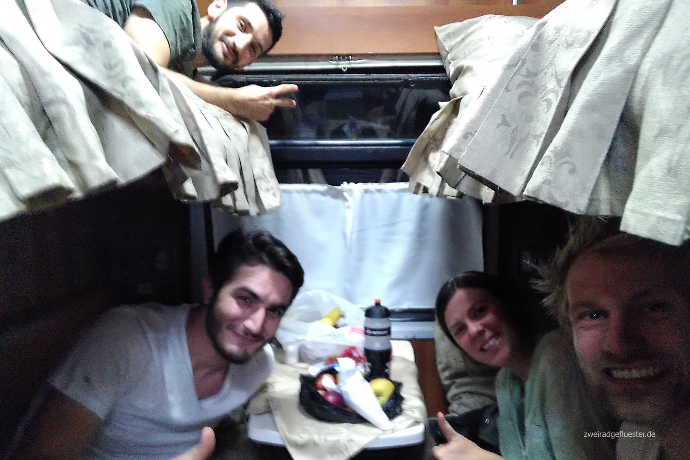 Zum Glück sind unsere Abteilnachbarn von einem anderen Schlag. Herzlich helfen sie uns die Taschen in den Zug zu tragen. Wir teilen unser Essen und schwatzen ein wenig, bevor wir uns in die Betten legen. Die beiden kommen aus der russischen Republik Dagestan und auch sie fahren davon, vor dem Krieg und ihrem alten Leben…