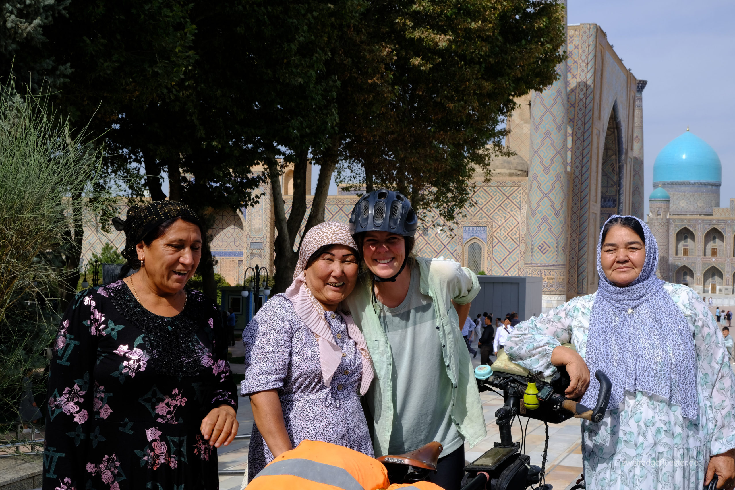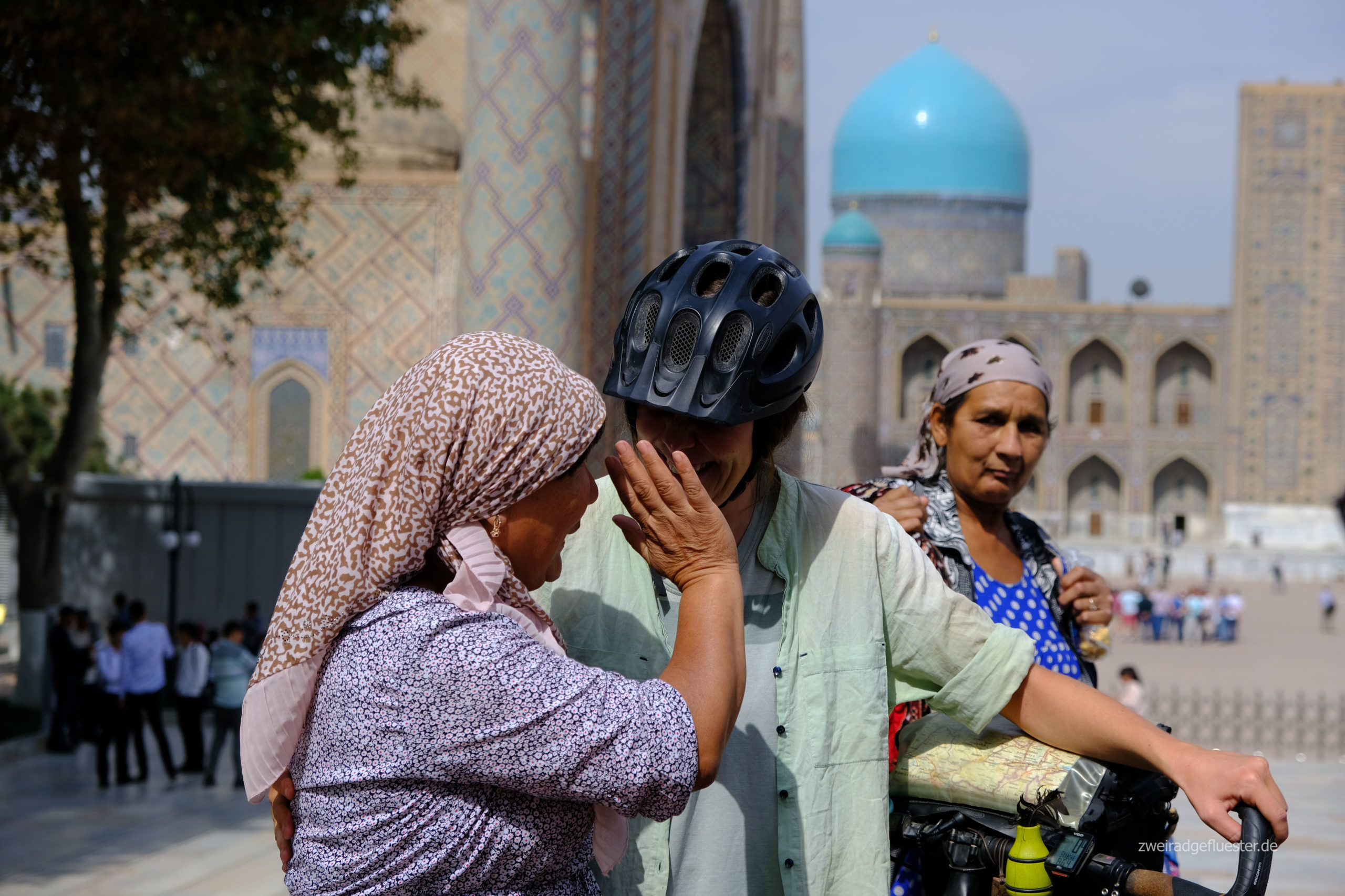 Wir kommen gegen Mitternacht in Samarkand an, satteln nach einer Nacht auch schon wieder die Räder und machen uns auf ins nächste Abenteuer. Tajikistan wir kommen, aber nicht ohne einen lustigen Selfiestopp am Registan in Samarkand.