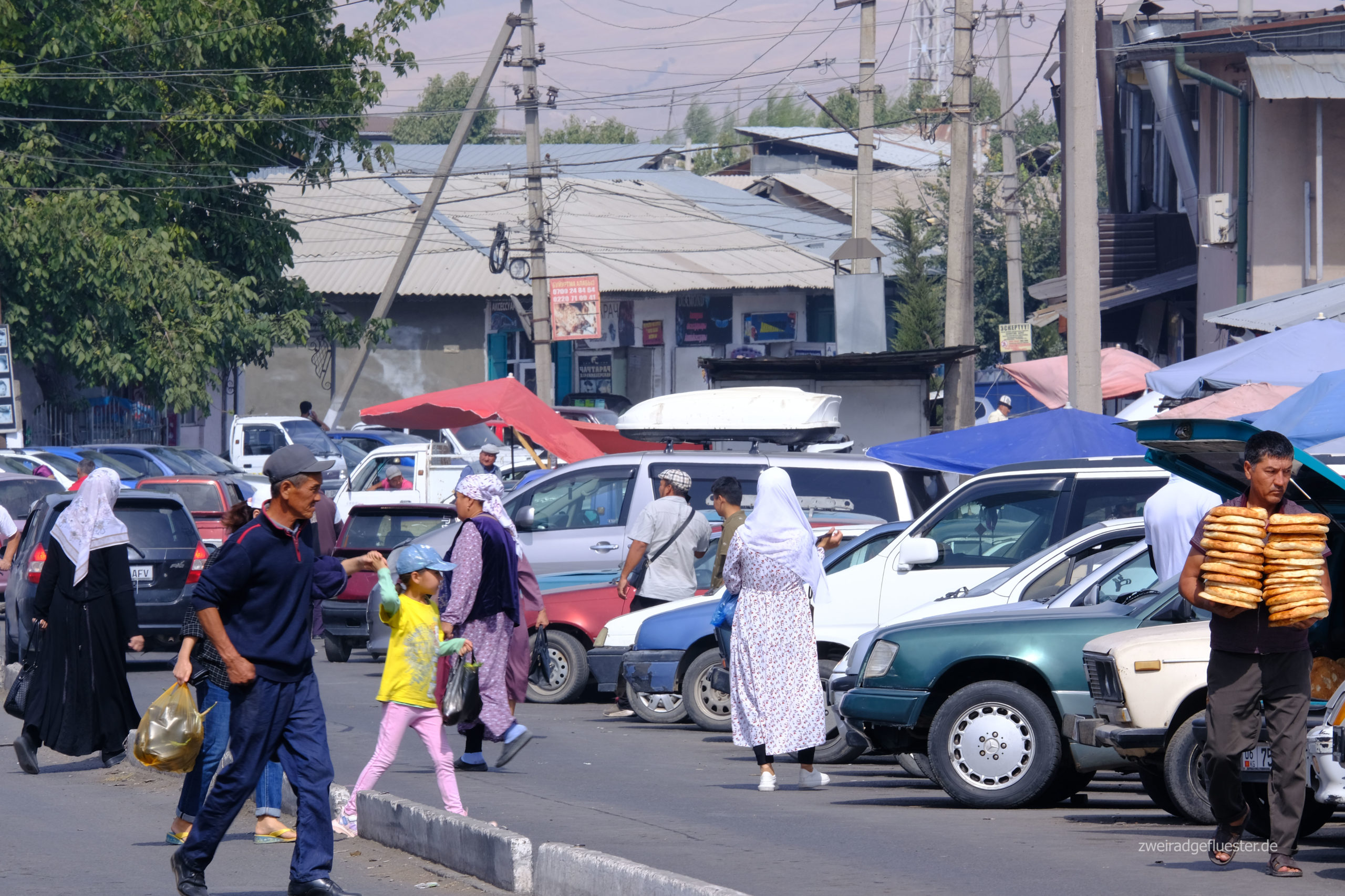 Die Menschen lachen wieder und wir natürlich auch. Sofort fühlen wir uns wohl und haben beim Rollen über die flachen Straßen im Ferganatal nach all den Bergen fast das Gefühl, als würden wir auf einmal fliegen.