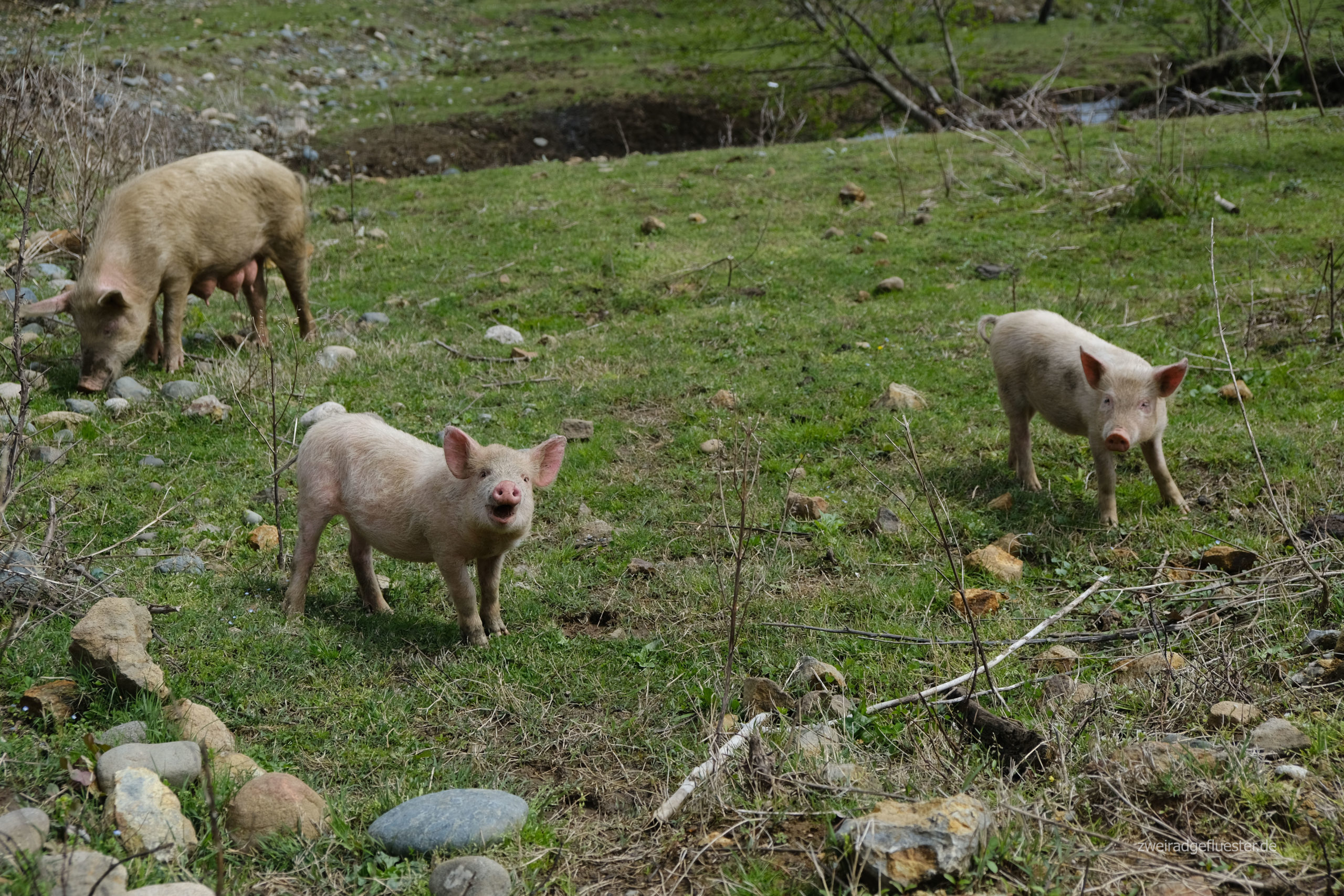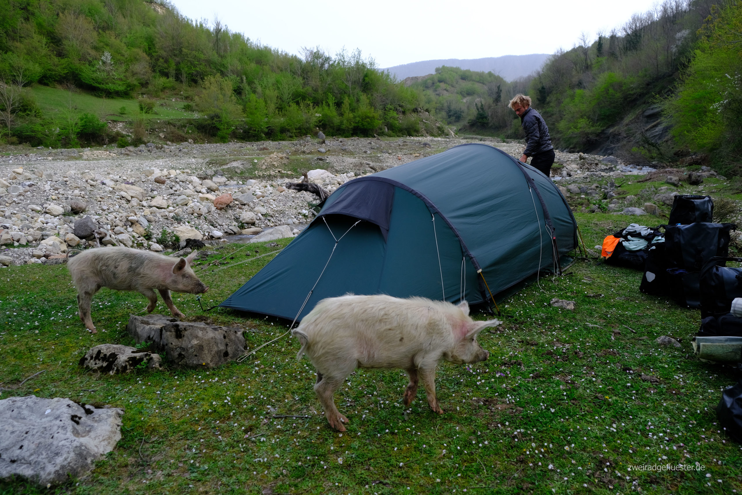 Nicht nur die freundlichen, offenen Menschen lassen unsere Herzen höher schlagen, auch die vielen scheinbar so glücklichen, überall frei herumlaufenden Tiere erfreuen uns immer wieder. Wie treffen so viele Schweine am Wegesrand, die sich glücklich im Schlamm wälzen, die Sonnenstrahlen aufsaugen oder uns einfach nur grunzend grüßen. Kühe gehören genauso zum Straßenverkehr wie verrückte Autofahrer:innen und auch die Pferde genießen die Freiheit, bis sie am Abend wieder ins Dorf galoppieren oder reingeholt werden. Diese tierische Idylle ist ziemlich rührend für uns, macht aber gleichzeitig wieder einmal schmerzlich bewusst, welch grausame Tierhaltungsmethoden in unserem Heimatland noch immer an der Tagesordnung stehen.