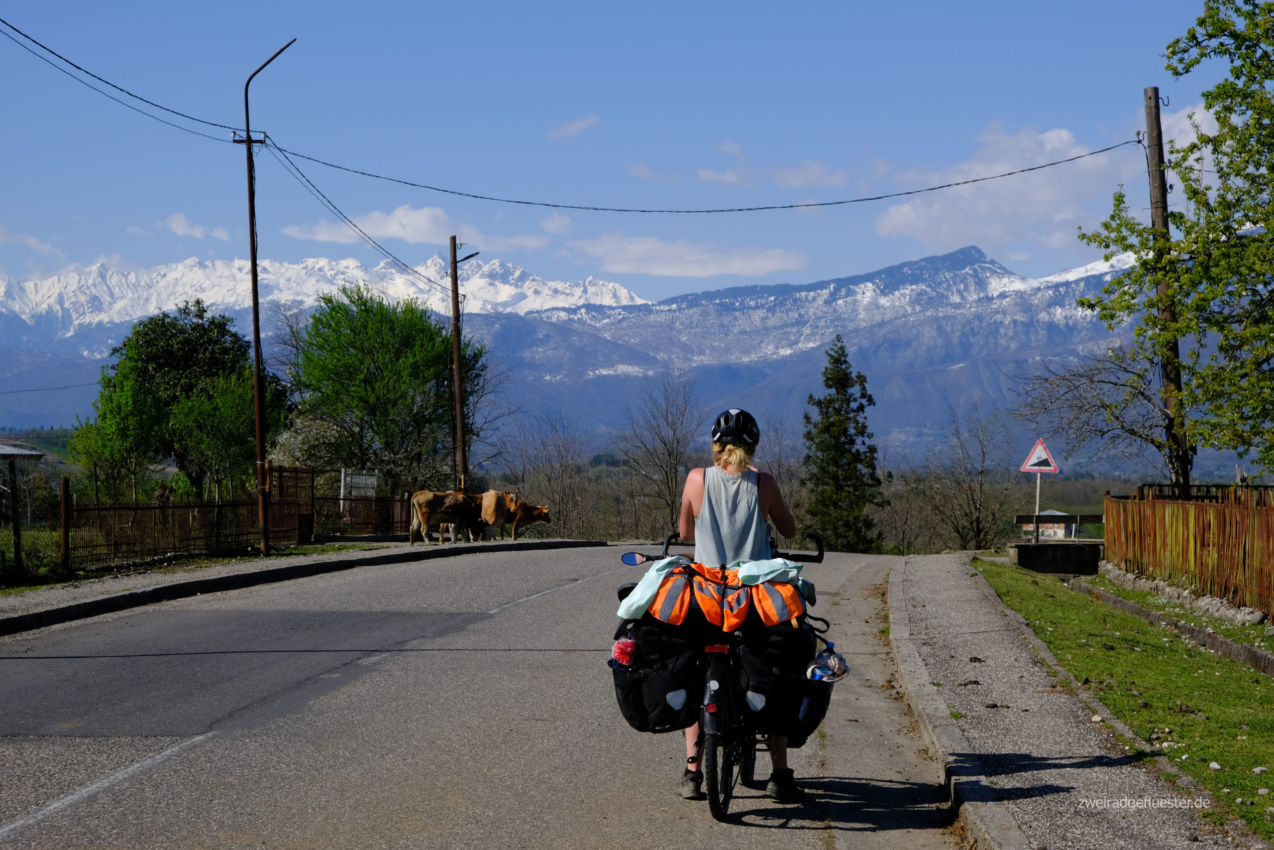 Georgien ist einfach ein Paradies für Naturliebhaber:innen, wie gemacht für Trekking, Wandern, Radfahren oder einfach draußen sein, also wie gemacht für uns. Dabei haben wir wohl die eindrucksvollsten Gebiete noch gar nicht gesehen. Die Berge des Kaukasus um Mestia und Ushguli, die im Sommer mit ihrem Grün über der Baumgrenze so wunderbar sein müssen. Doch dafür sind wir wohl zur falschen Zeit hier. Lange überlegen wir hin und her, aber dann entscheiden wir uns gegen die Bergetappe durch den Kaukasus. Kurz vor unserem Abschied in Ozurgeti hat eine Freundin aus Mestia Misha auf Nachfrage berichtet, es habe die Nacht einen halben Meter Neuschnee in Mestia gegeben. Das hat die Entscheidung deutlich einfacher gemacht.