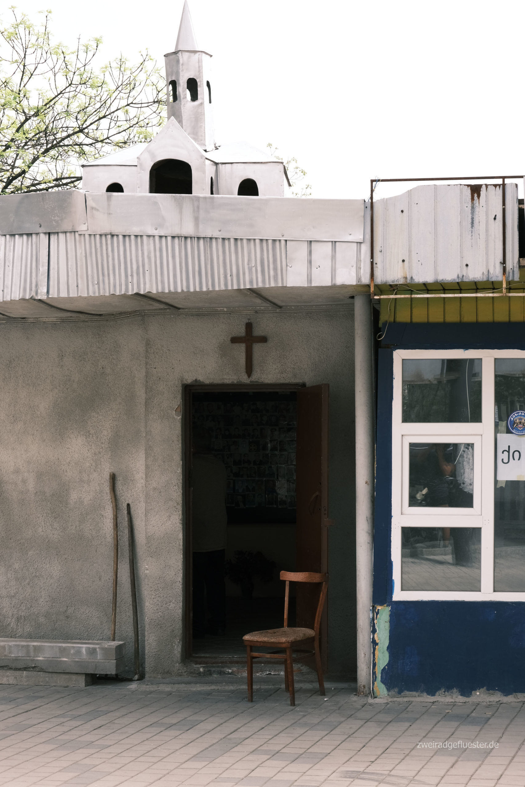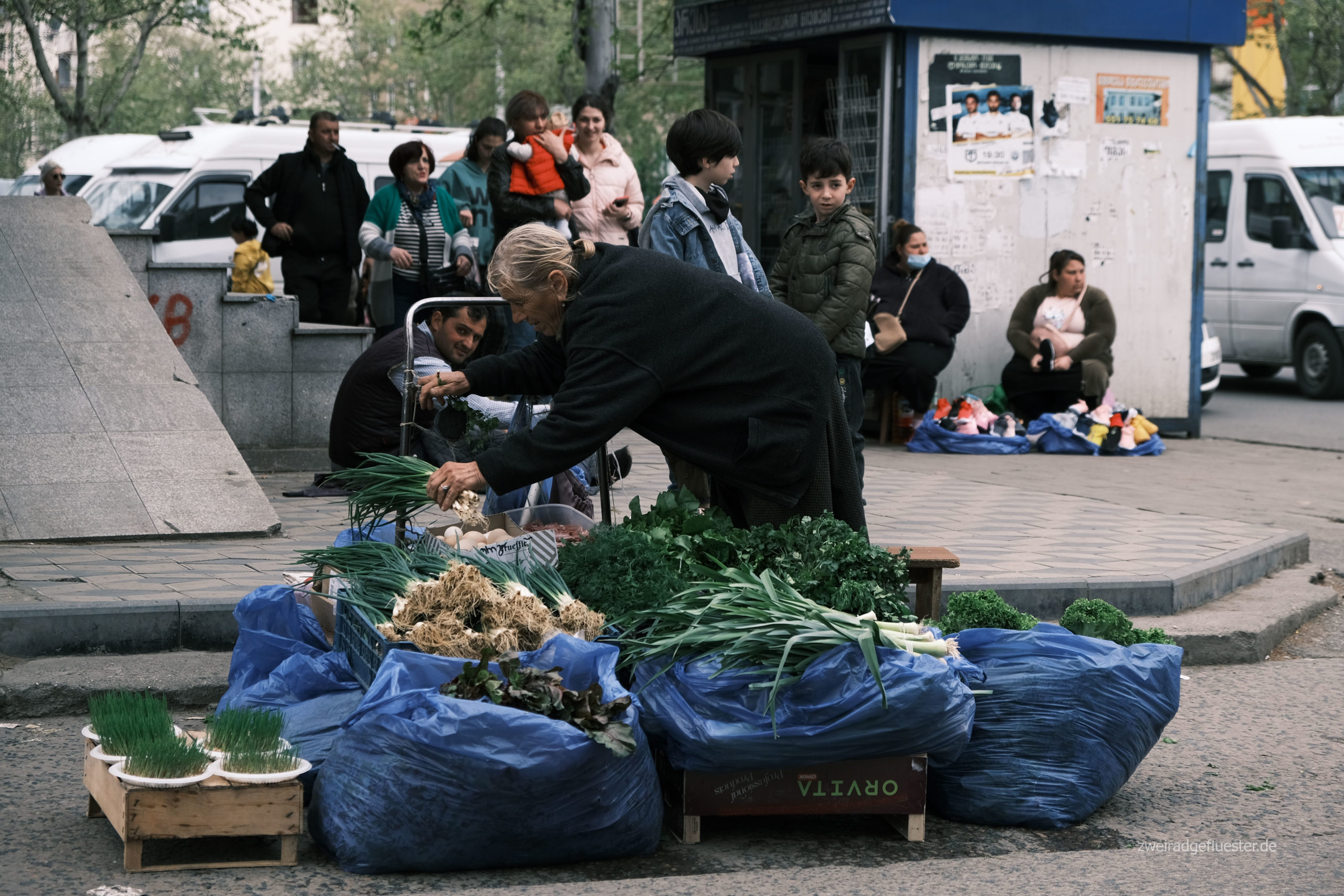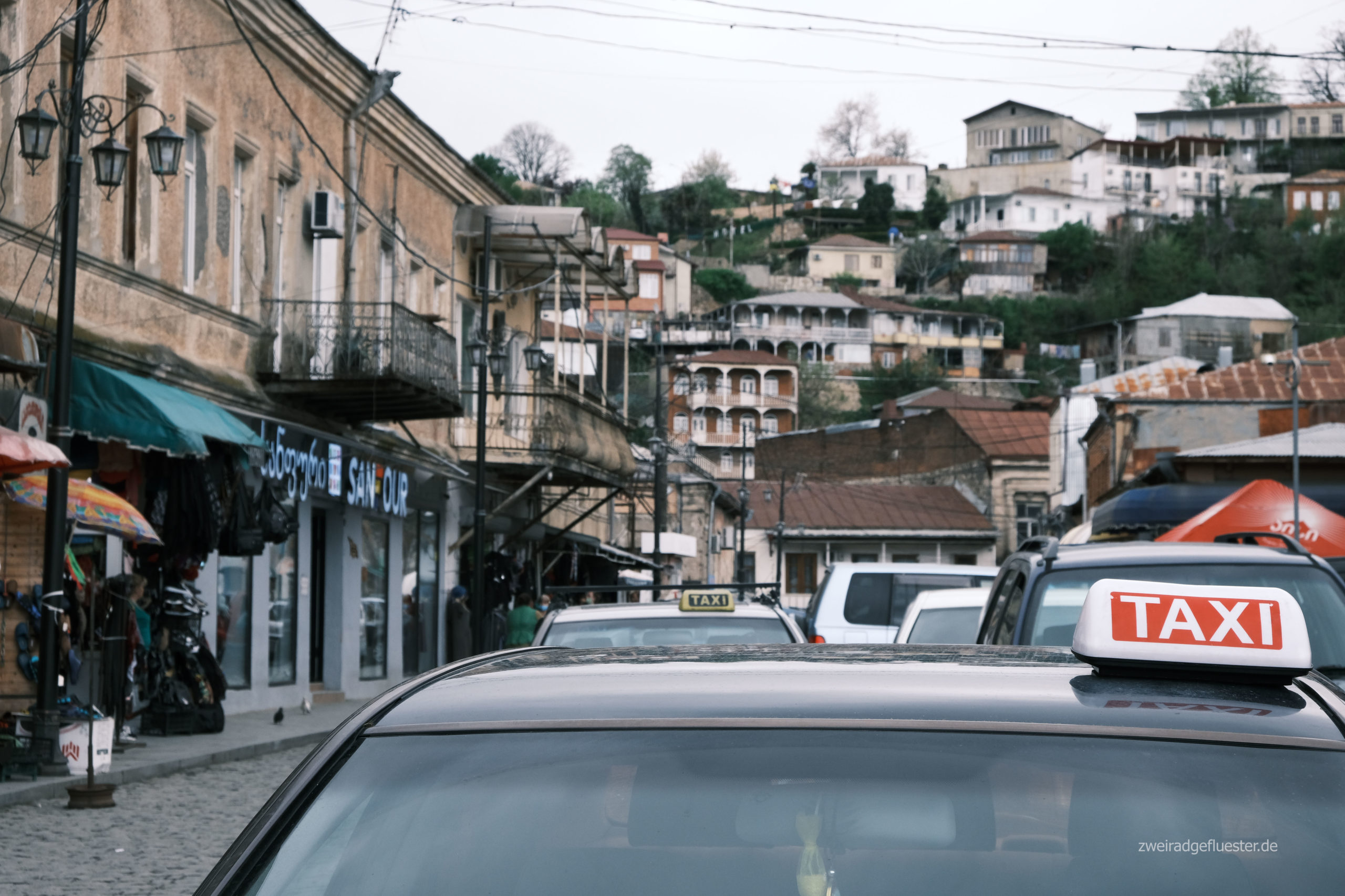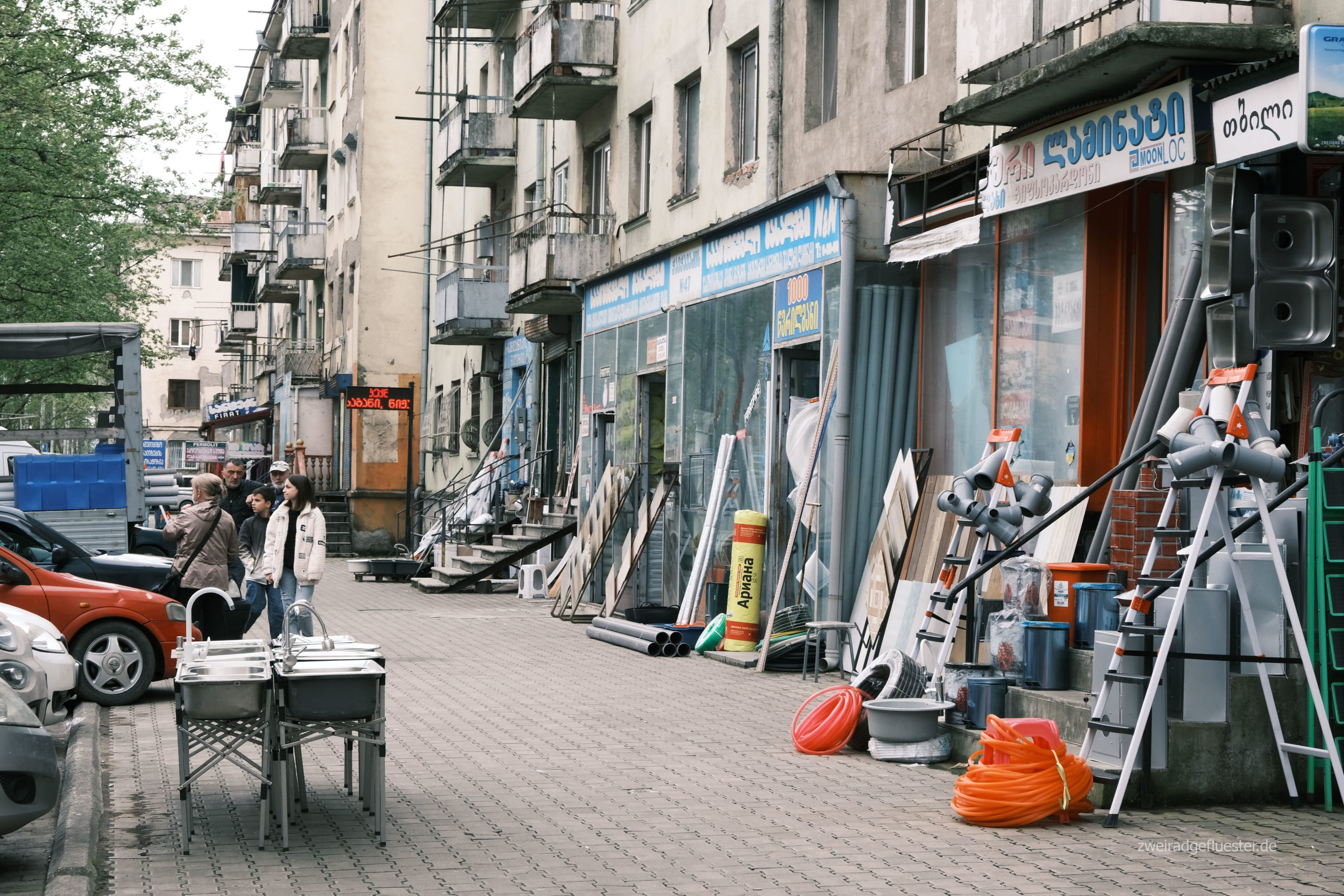 Wieder in Kutaisi angekommen schlendern wir durch die Straßen. Es ist ein einziges Gewimmel. Überall werden Sachen am Straßenrand verkauft. Auf dem Green Bazaar decken wir uns für die nächsten Tage ein und genießen den Markttrubel in vollen Zügen.