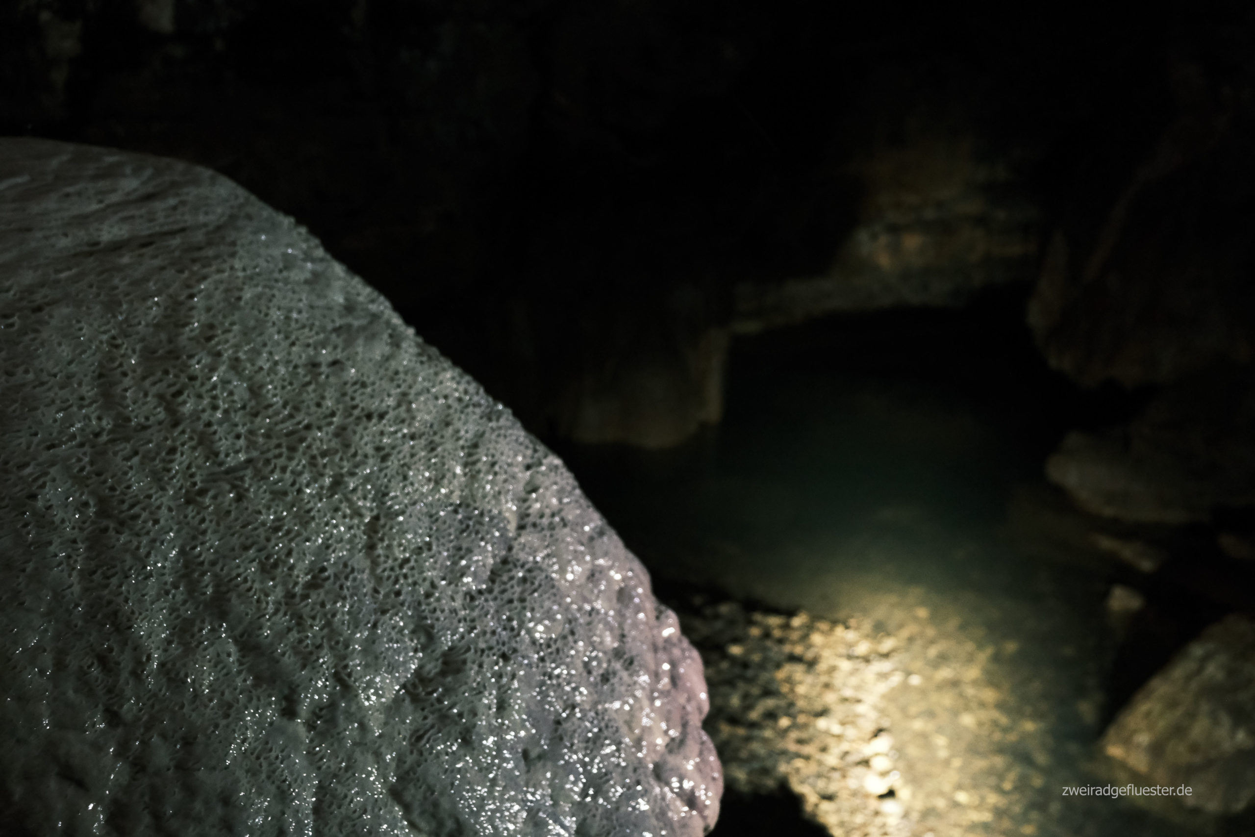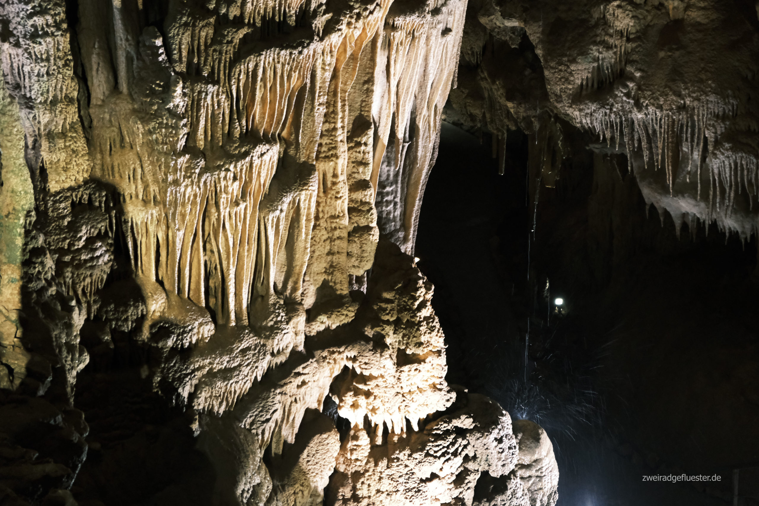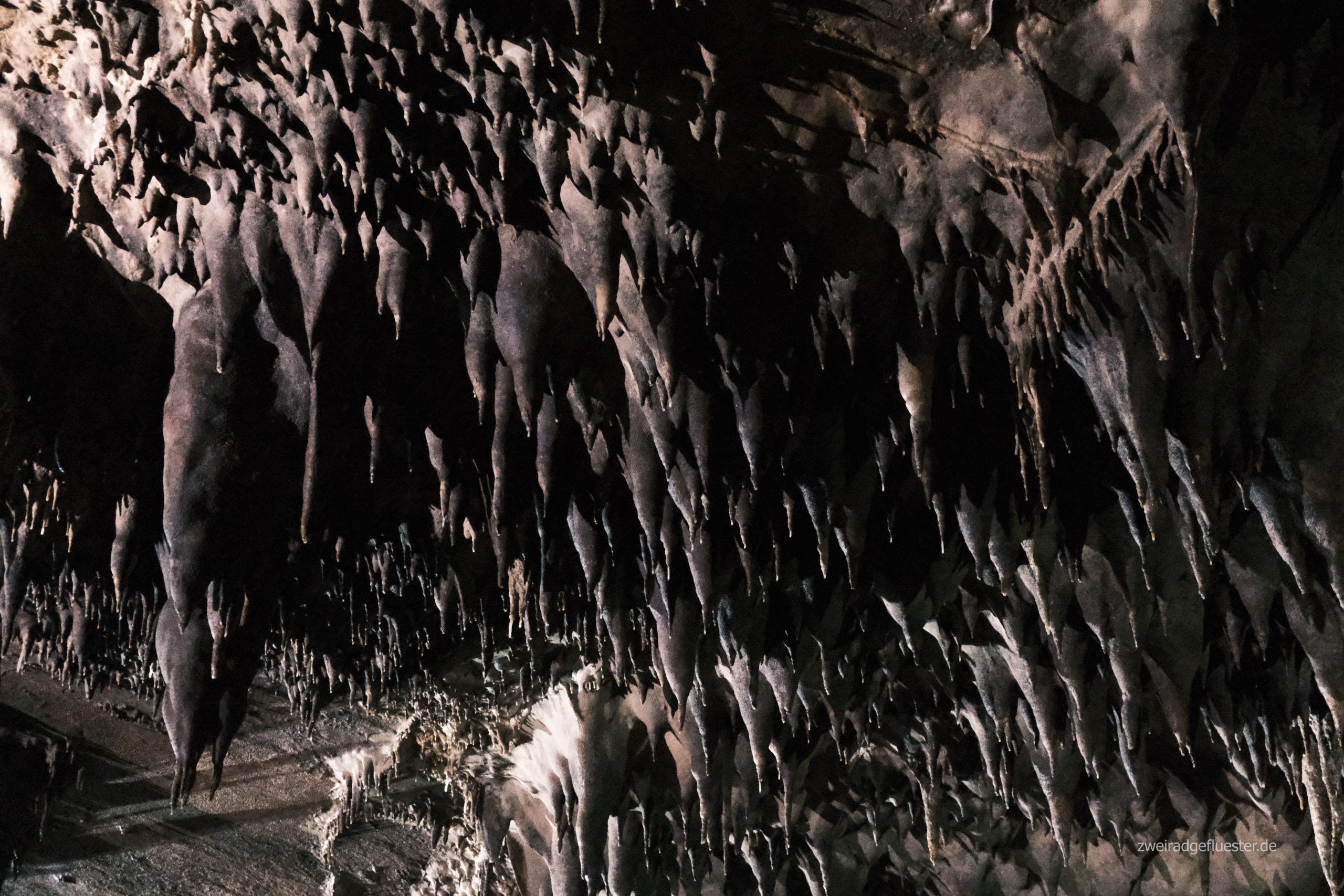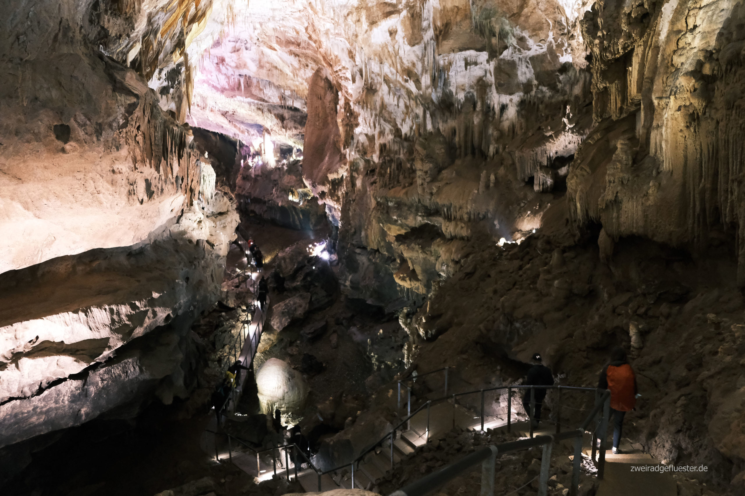 Als wir am nächsten Morgen aufwachen regnet es, perfektes Timing also für eine feste Unterkunft und um die Prometheus Höhle zu besichtigen. Dort angekommen, startet die nächste Führung ziemlich bald und wir schlängeln uns bei konstanter Temperatur von 14°C immer weiter nach unten bis auf -40 m. Der Weg durch die Höhle ist insgesamt knappe zwei Kilometer lang. Sie wurde erst 1984 entdeckt und ist sehr beeindruckend.