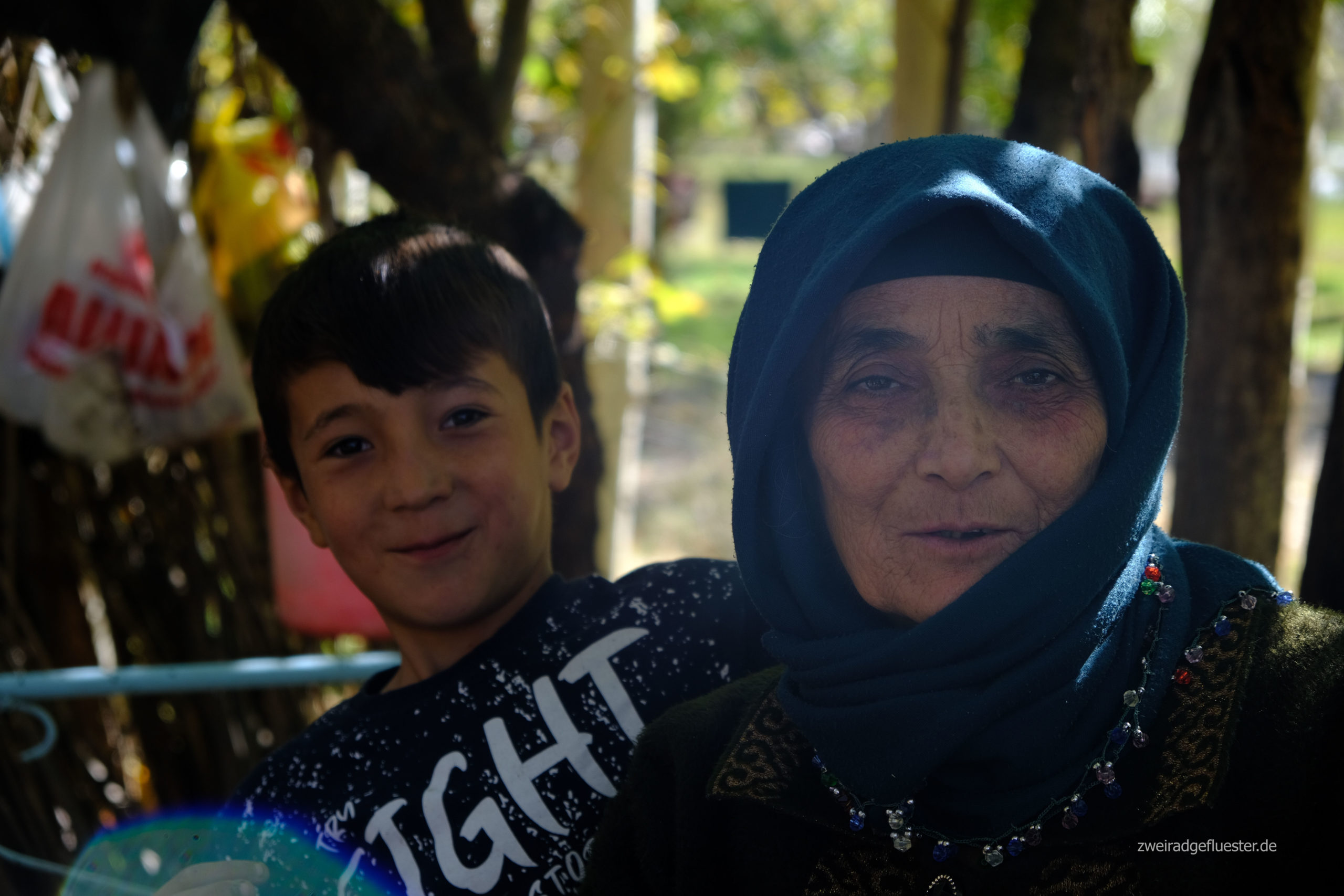Am Ende hält Oma Barno noch eine Rede und auch wenn wir nicht wirklich viel verstehen, so wissen wir doch, dass sie Allah für unseren Besuch dankt und uns die besten Wünsche mit auf den Weg gibt. Es folgt das obligatorische „amin“ sowie das Streichen über das Gesicht und damit ist das gemeinsame Essen beendet. Draußen werden wir noch von ihr abgebusselt und uns werden viele Kinder gewünscht. Die Verwunderung und Sorge darüber, dass wir bisher noch keine haben, ist auch in Zentralasien Thema Nummer eins.