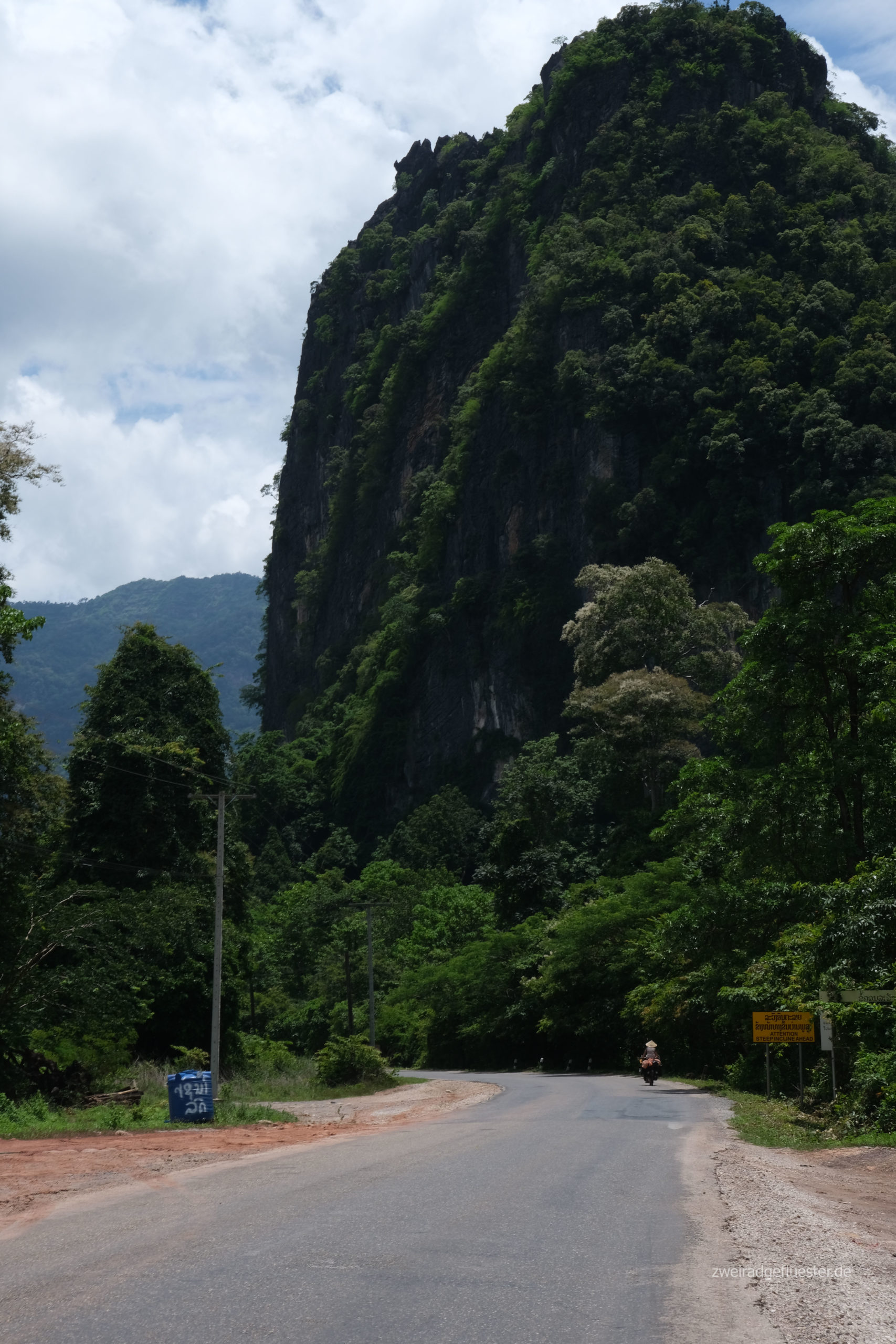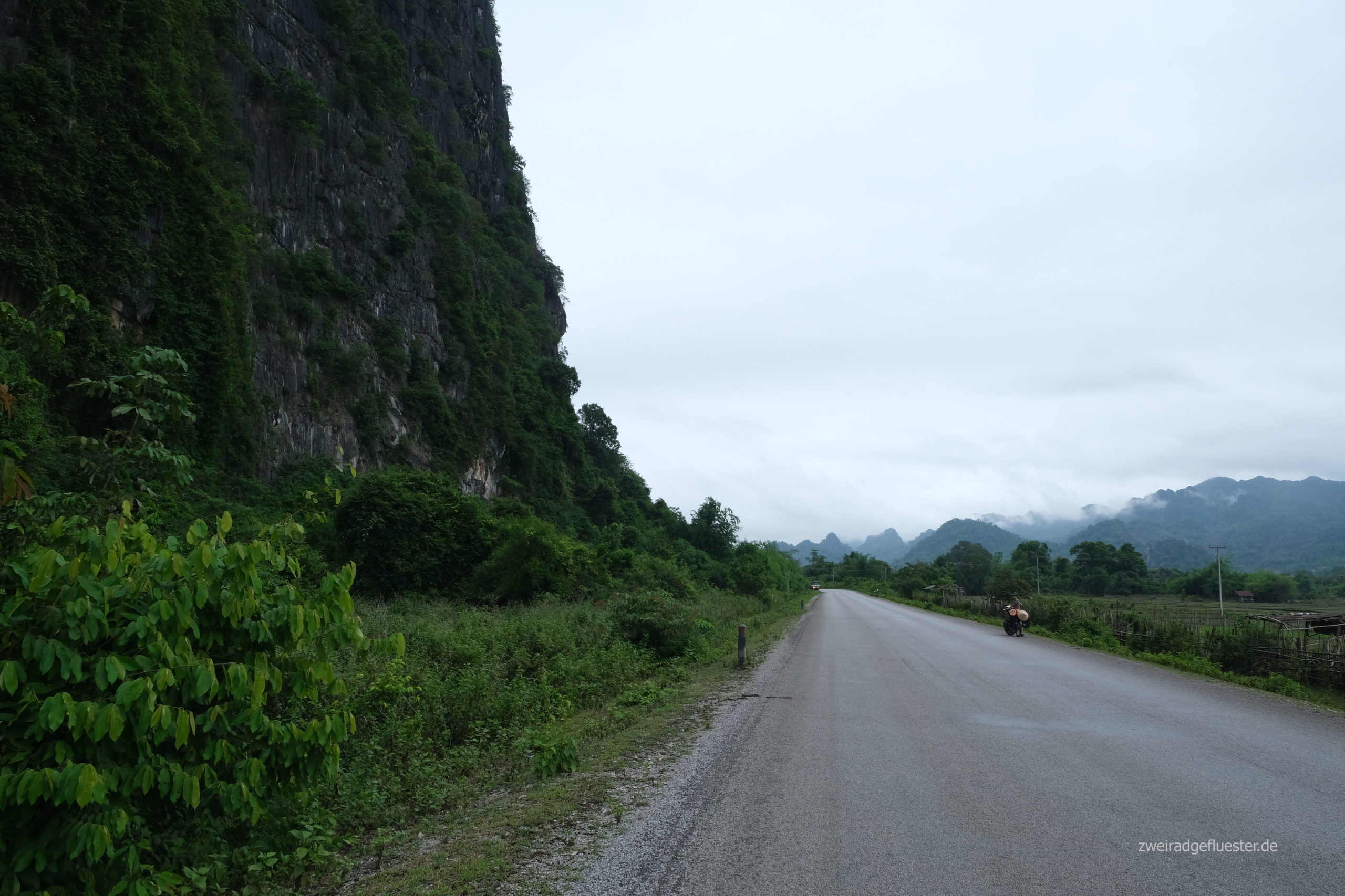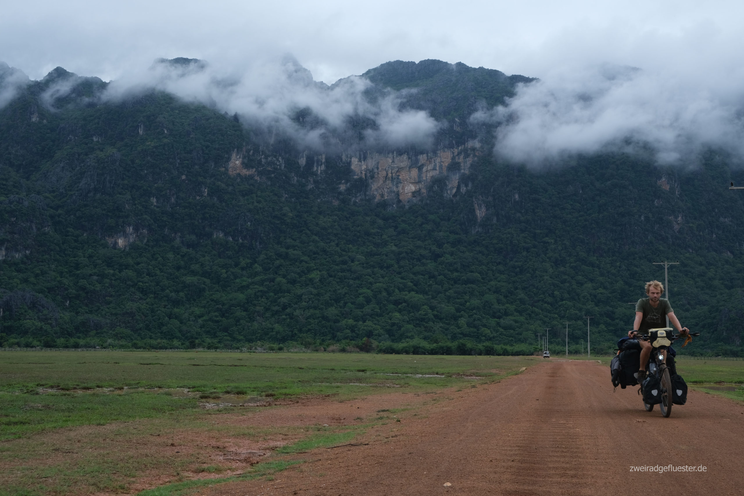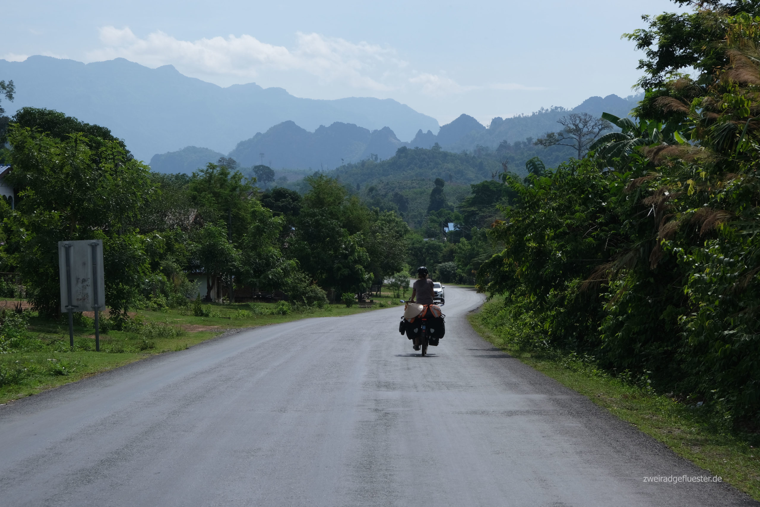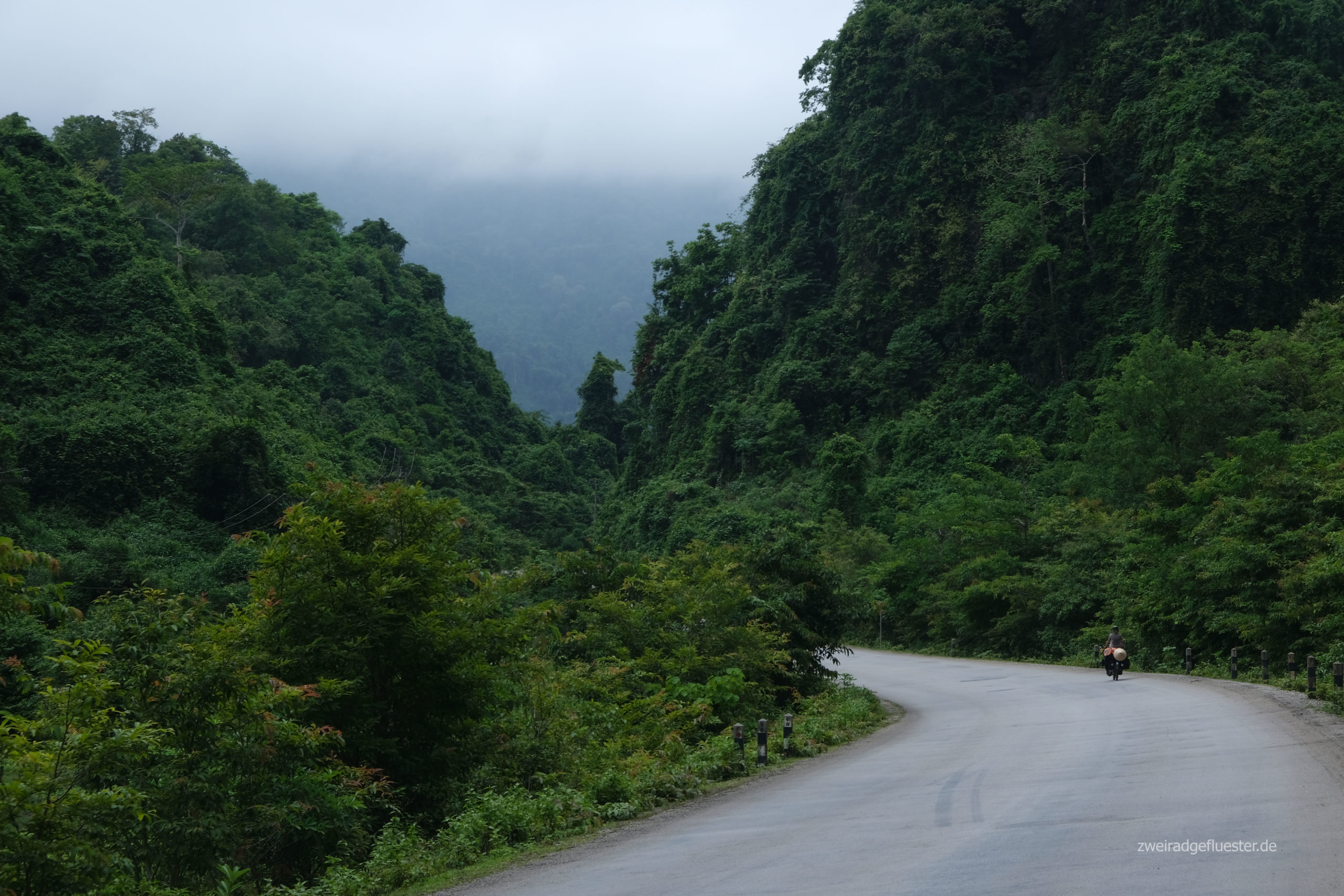 Wir verlassen den Thakhek Loop und rollen in Richtung vietnamesische Grenze. Die Gegend behält ihre natürliche Schönheit. Wir genießen es durch den intakten Regenwald zwischen den Karstbergen zu radeln. Die touristischen Einrichtungen verschwinden. Es gibt wieder Pho und Reis, aber auch wieder mehr Warnschilder vor nicht explodierten Bomben und Munition.
