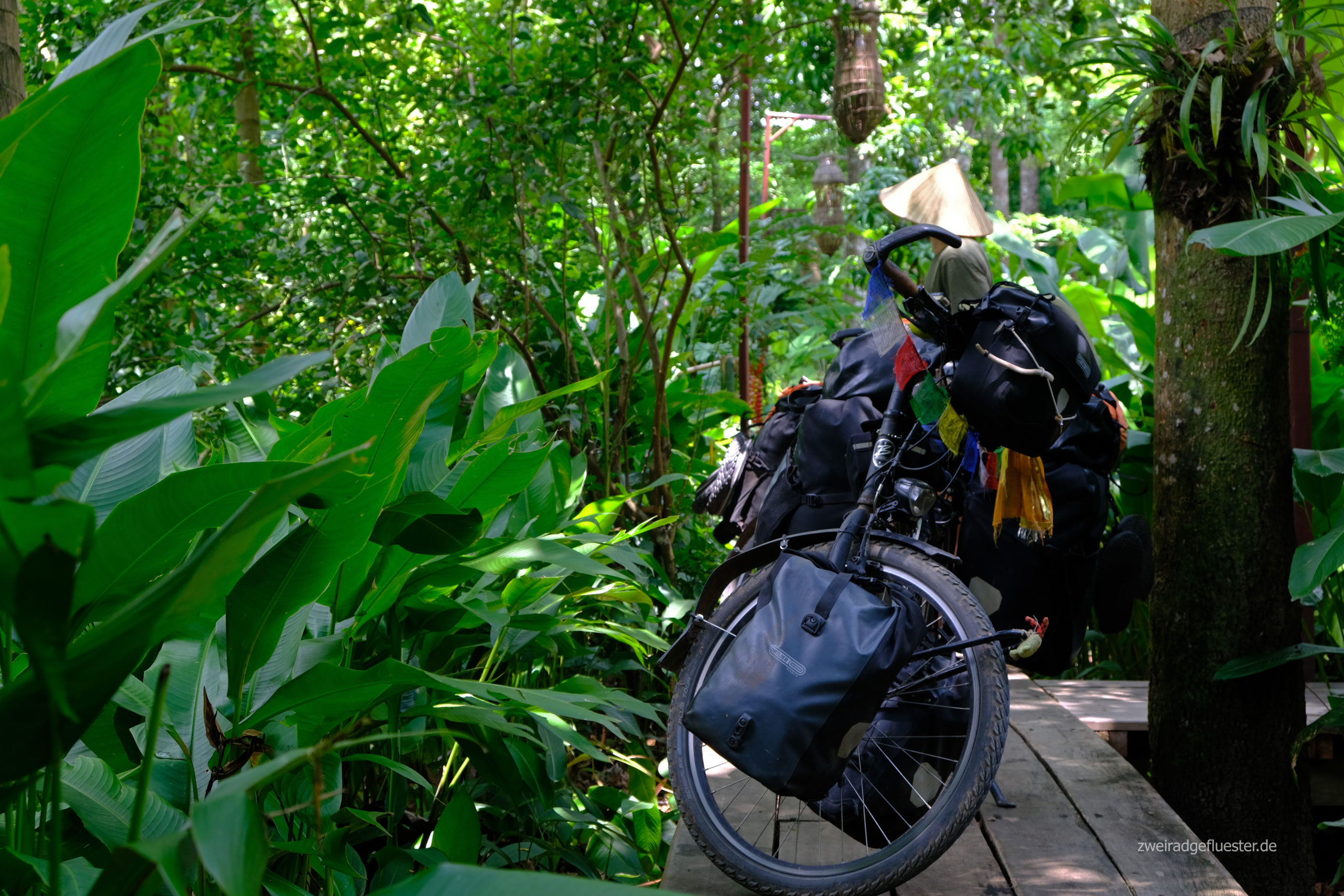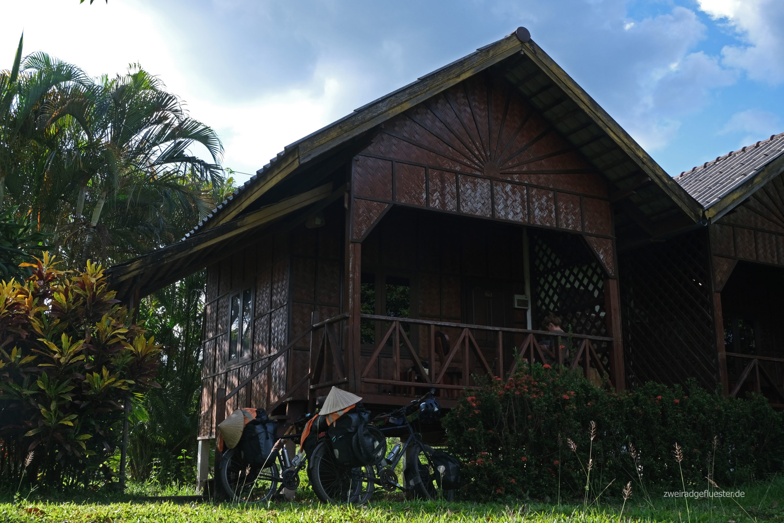 Im Anschluss rollen wir wieder hinab durch den kühlen Wald und erreichen das flache, heiße Tal zwischen den interessanten Felsformationen. Am Fluss Nam Hai finden wir einen gemütlichen Bungalow im Grünen bei einem sehr liebenswerten, älteren, laotischen Pärchen, wo wir endlich mal wieder ein bisschen entspannen wollen.