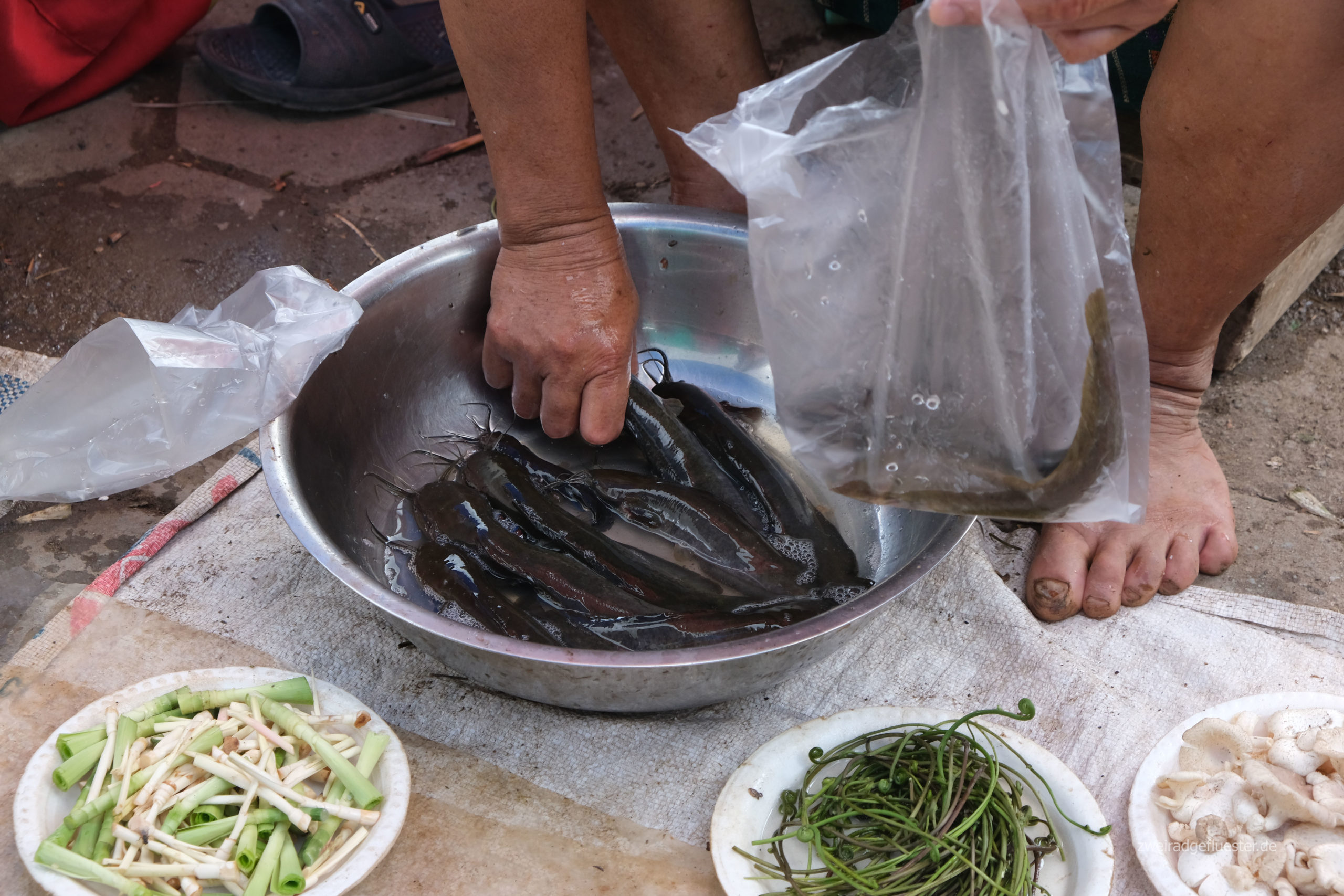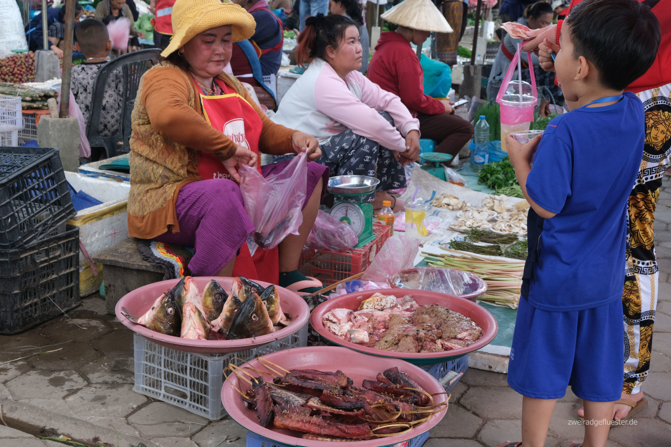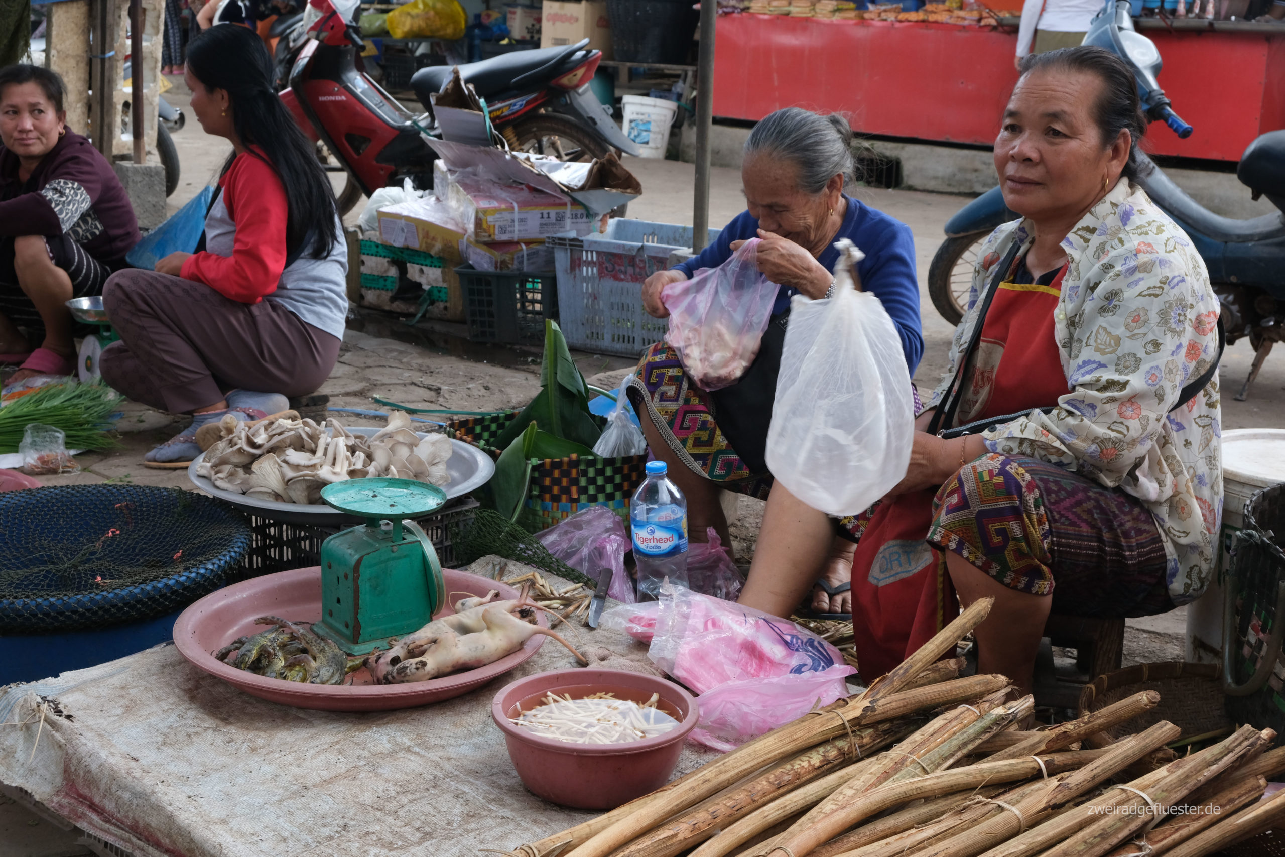 Lak Xao war einst für seinen Markt und vor allem das exotische Angebot an Tieren bekannt, welche hier von Vietnam nach Thailand verkauft wurden. Heute werden zwar vor allem Dinge des täglichen Bedarfs gehandelt, aber für uns sind diese noch immer ziemlich exotisch. Nichts für schwache Nerven und schon gar nichts für Tierliebhaber*innen. Dennoch ist es spannend noch einmal einen riesigen, laotischen Markt sehen zu können.