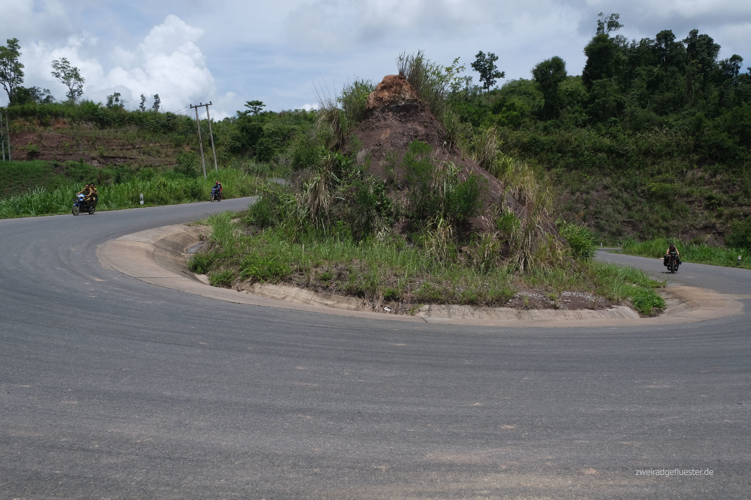 Während der kleinen Pause kann man recht schnell vergessen, wie anstrengend das Terrain in Laos doch ist. Etwas übermotiviert werden wir, zurück auf den Rädern, schon bald von der hügeligen Realität gepaart mit der schwül, heißen Mittagssonne eingeholt. Unser nächstes Ziel ist jedoch Motivation genug sich weiter zu quälen.