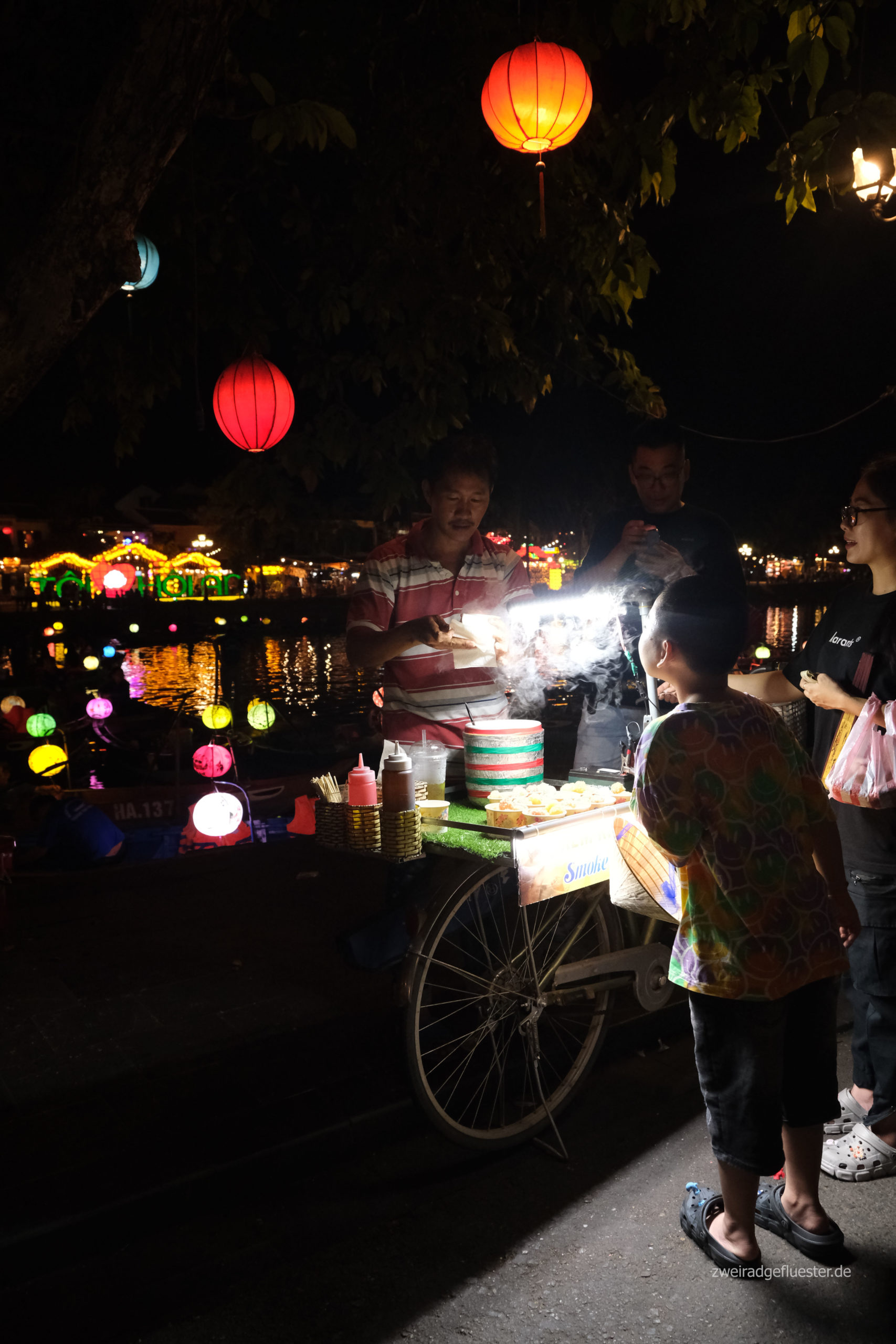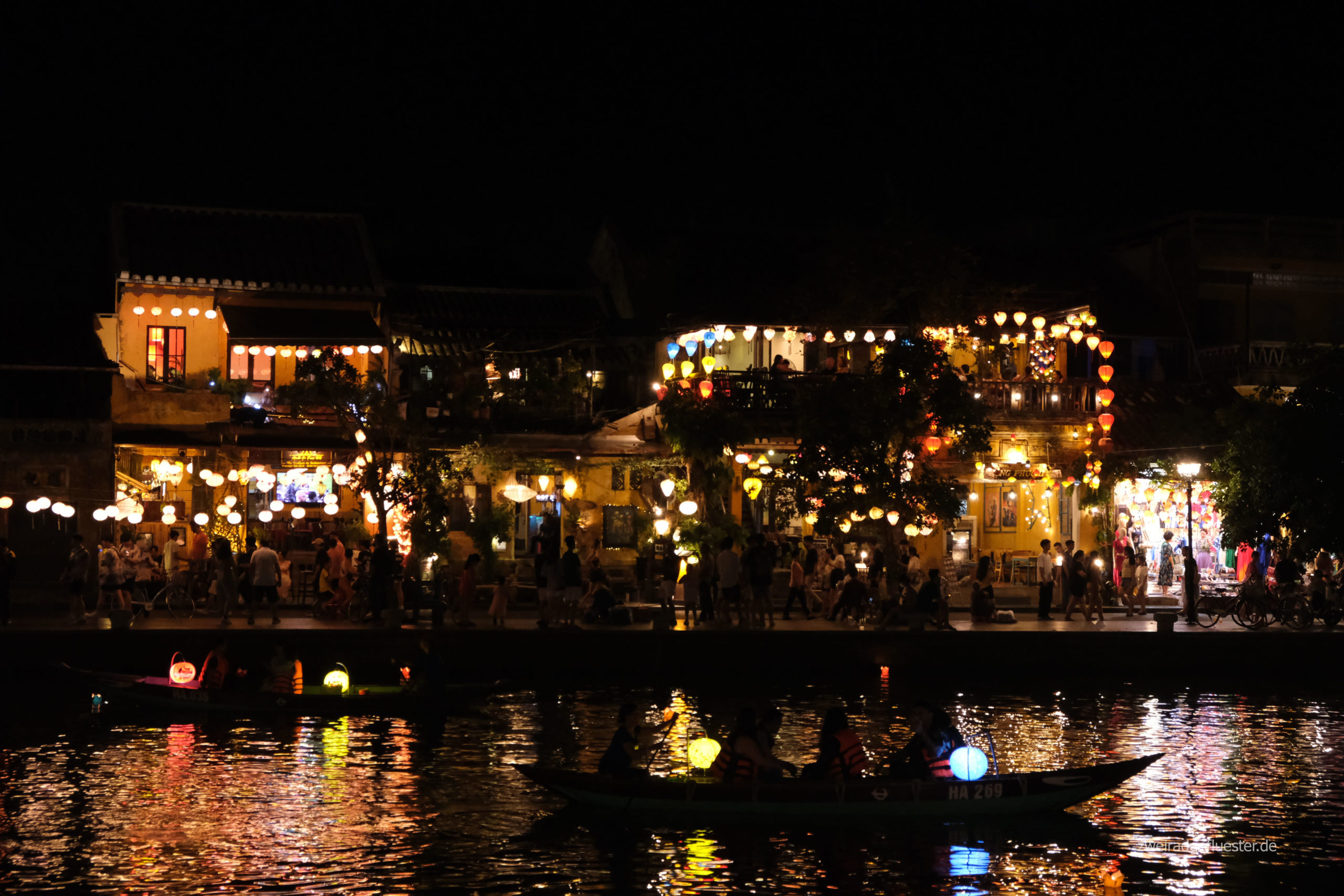 Doch mit einem einstigen, blühenden Welthafen hat das Ganze heute in unseren Augen nichts mehr zu tun. Man kann es wohl eher als Hafen für Tourist*innen bezeichnen. Die schönen Gassen sind völlig überfüllt mit unzähligen Reisegruppen. Alles ist für Reisende angelegt. Es gibt massenweise Läden voller billiger Kleidung und Kitsch. Am Abend verwandelt sich die Szenerie in eine Partymeile mit nervigen Menschen, die einem irgendwelchen Plastikschrott oder Kerzen für den leuchtenden Fluss andrehen wollen oder einen volllabern, um in Restaurants oder Bars zu lotsen. Wir erleben einen echten Kulturschock.