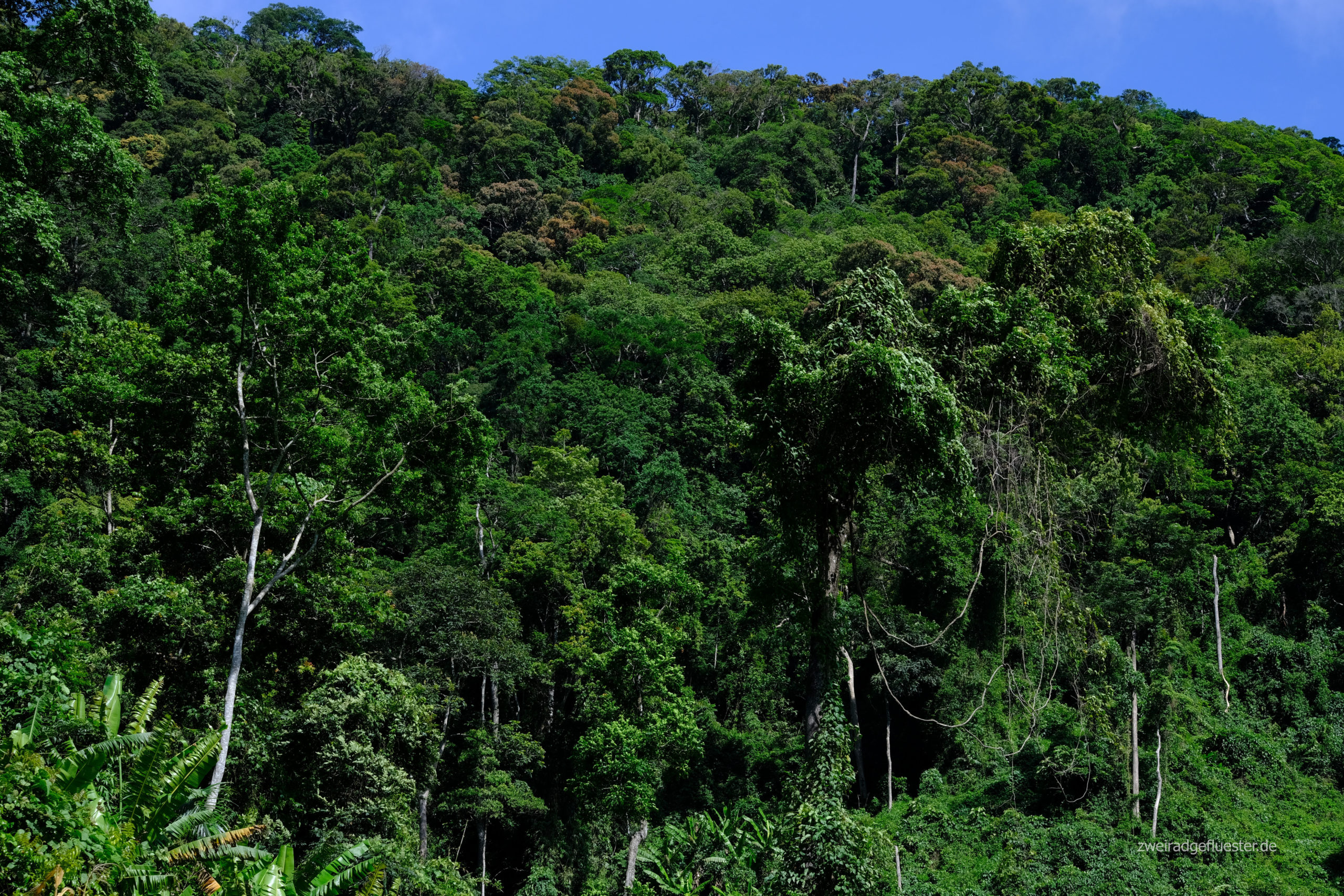 Wir genießen die lange Fahrt durch den Regenwald und die atemberaubende Naturlandschaft, bis der nächste Anstieg vor uns liegt. Knack! Da war ja was! Die Landschaft ist zwar nicht weniger schön, aber wir eben auch blitzartig wieder im Durchhaltemodus. Knack!