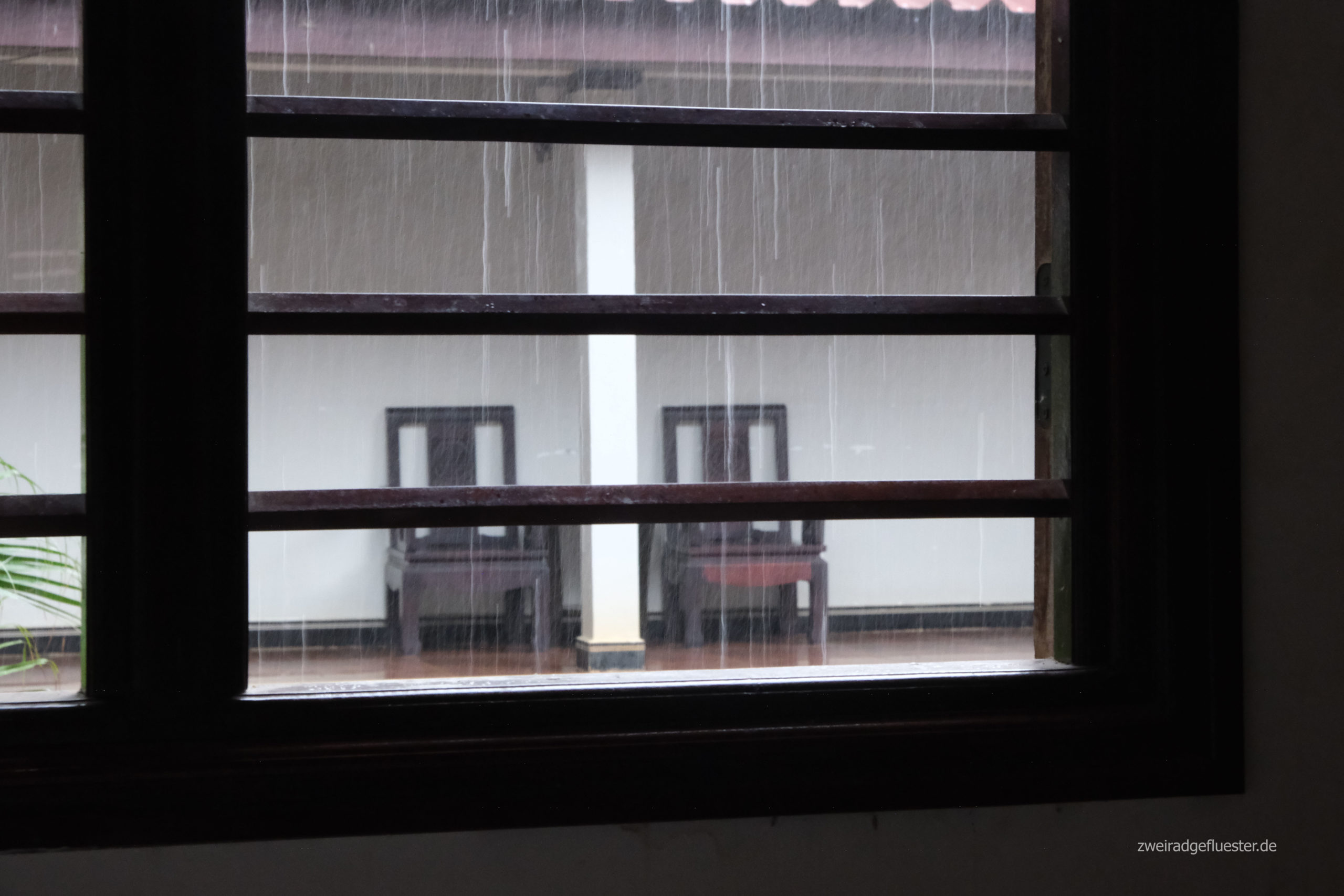 Dann entlädt sich der Himmel, es schüttet ohne Ende. Das Donnern ist ohrenbetäubend laut. Nach dem der Regen sich beruhigt, ist die Luft feucht. Alles ist klamm, wie soll man hier auch den Schimmel fernhalten können?
