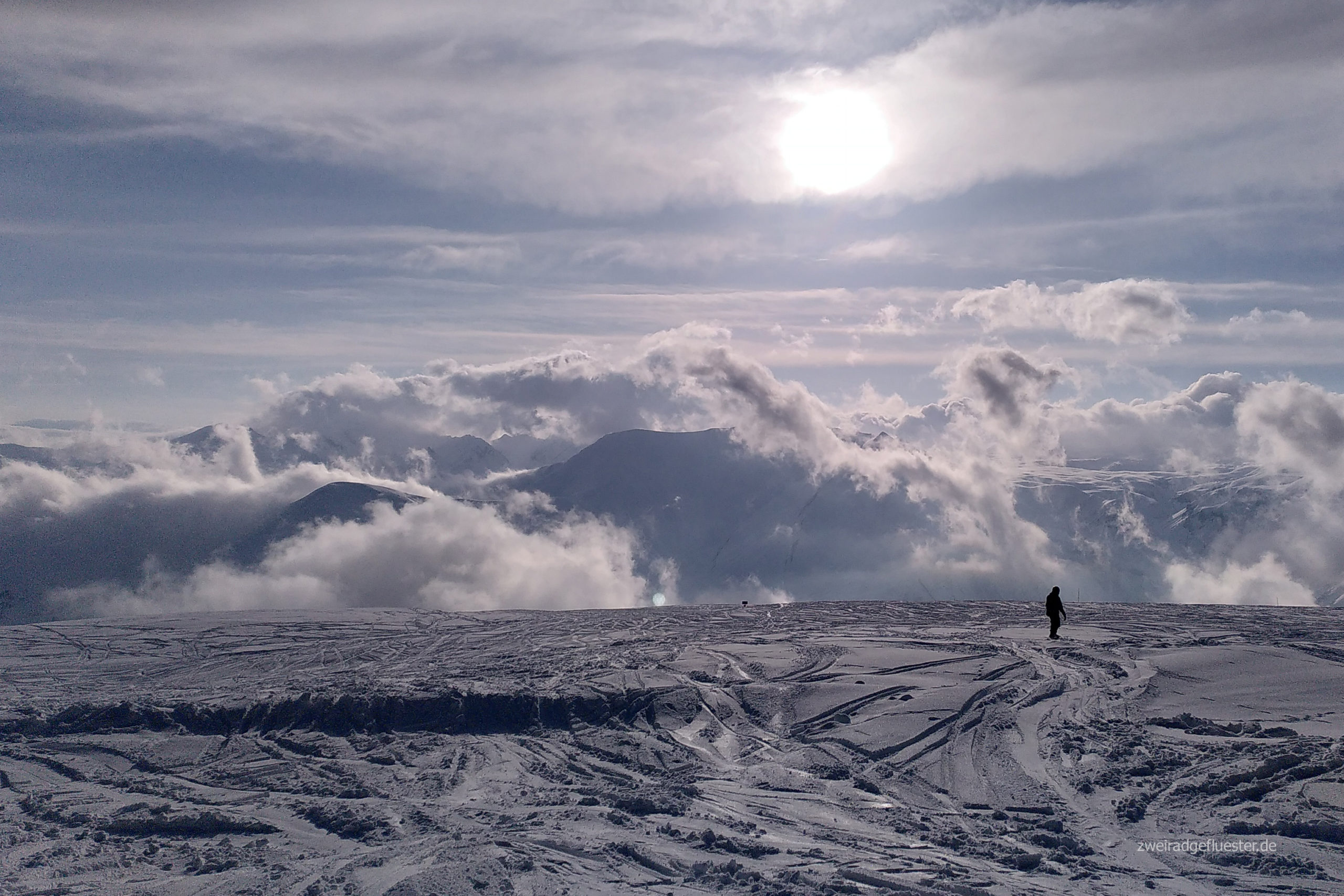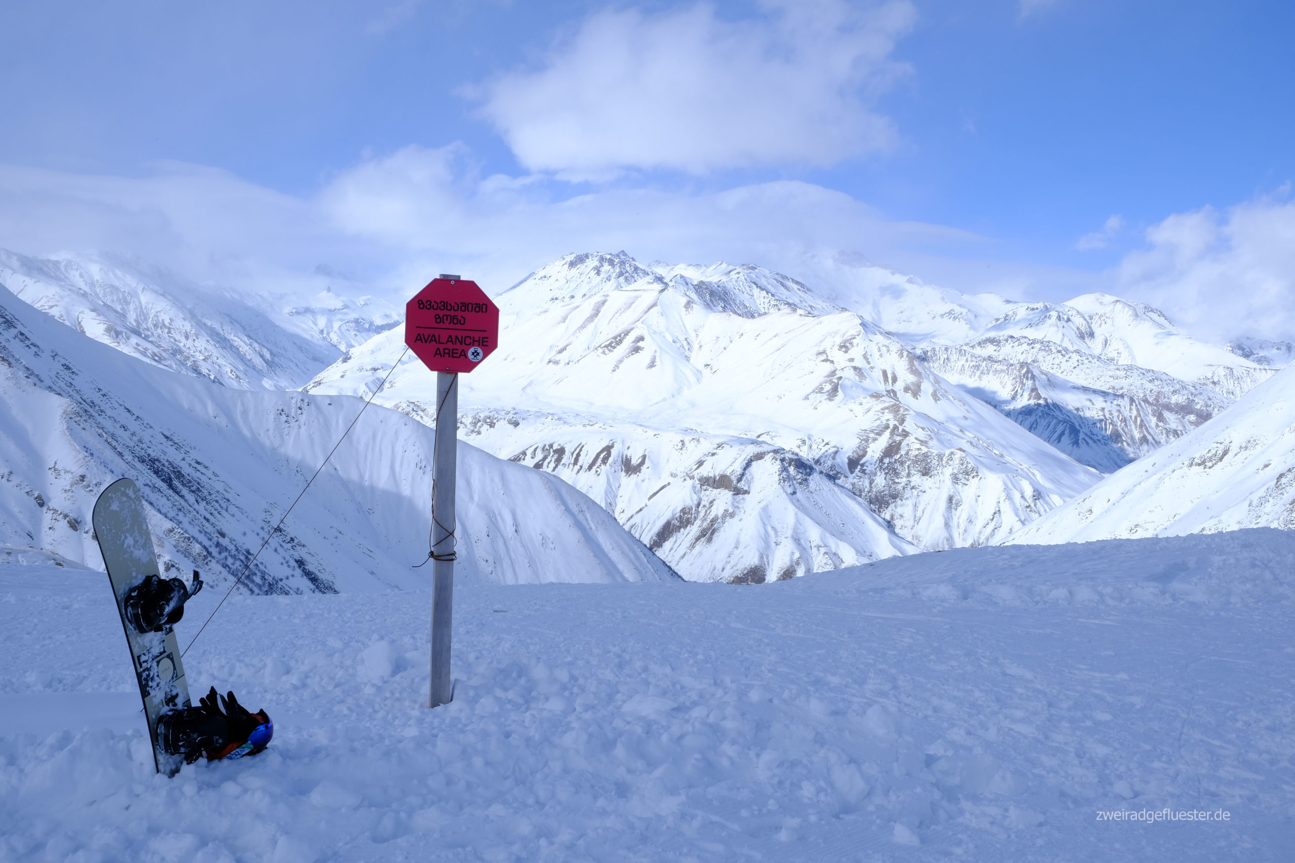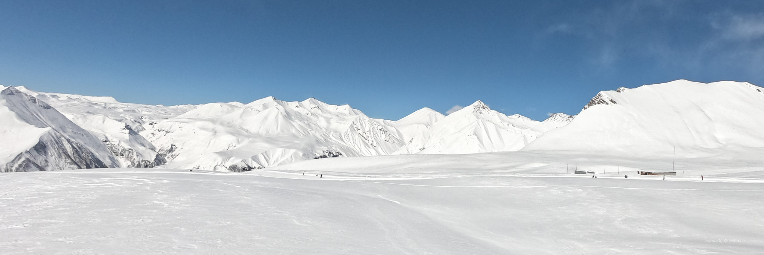 Mit dem Skiresort Gudauri sind wir dann schon wieder an einem Ort, der mit Georgien recht wenig zu tun hat. Von der Unterkunft bis zu den Liften könnte man sich hier auch in den Alpen wähnen. Einzig die nur sehr seltenen, deutschen, englischen oder österreichischen Wortlaute in der Gondel und die Hunde, die des Öfteren einfach die Piste kreuzen, sagen uns, dass wir wohl etwas östlicher sind.