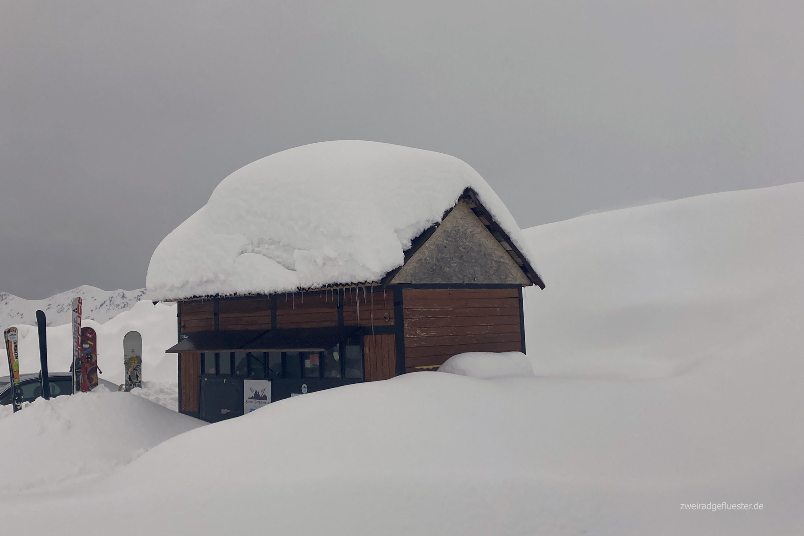 In den ersten Tagen ist auch hier Schnee eine herbeigesehnte Himmelserscheinung und das auf Zwei- bis Dreitausend Meter Höhe. Über zehn Grad in der Sonne lassen die Pisten nur so dahin schmelzen. Irgendwann entlädt sich der Himmel aber dann doch noch und es schneit und schneit. Einen halben Meter pro Tag, ein ganzes Wochenende und es kommt immer mehr und mehr. Wir haben noch nie so viel Schnee gesehen wie hier. Dazu herrschen Temperaturen von bis zu -15 Grad!