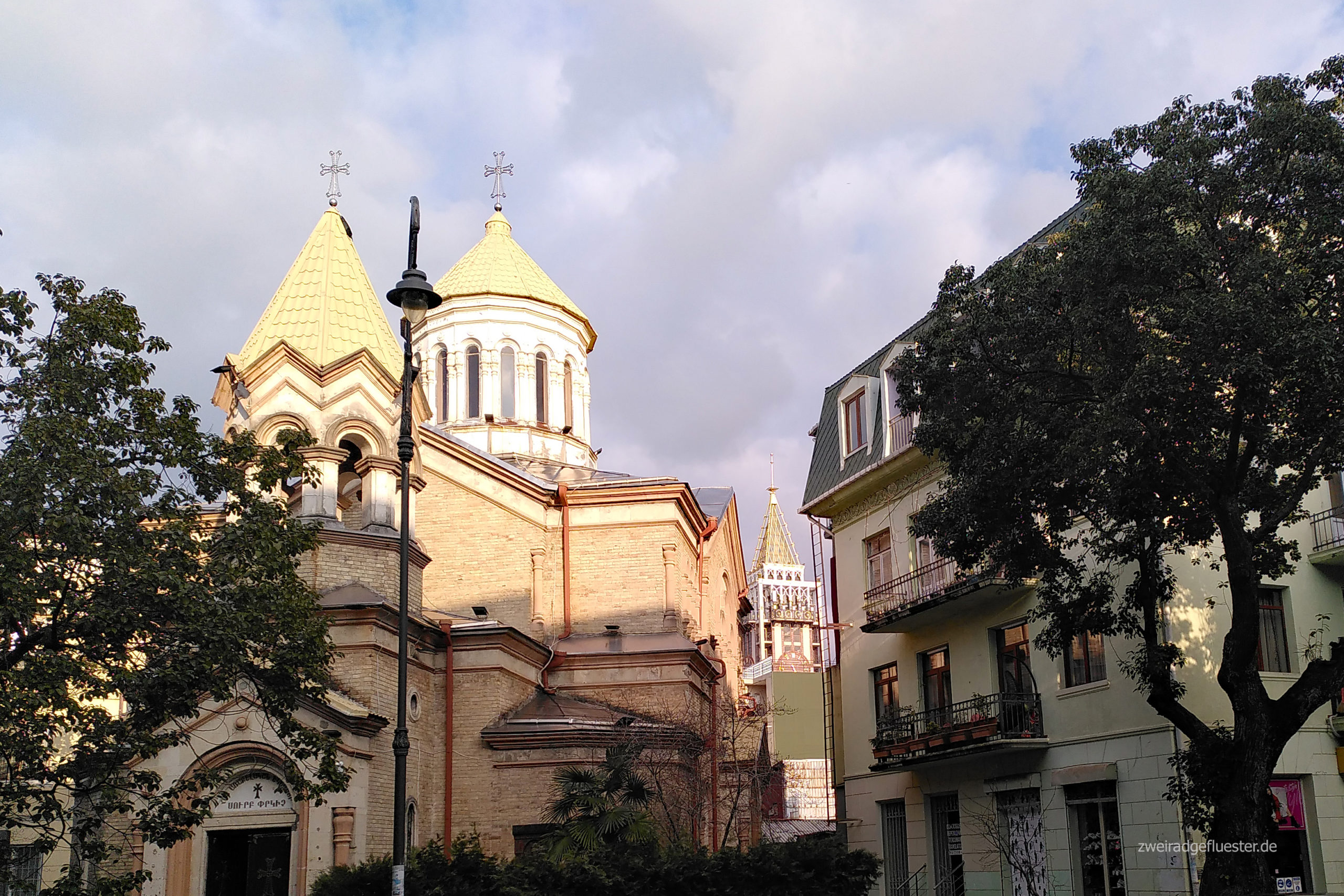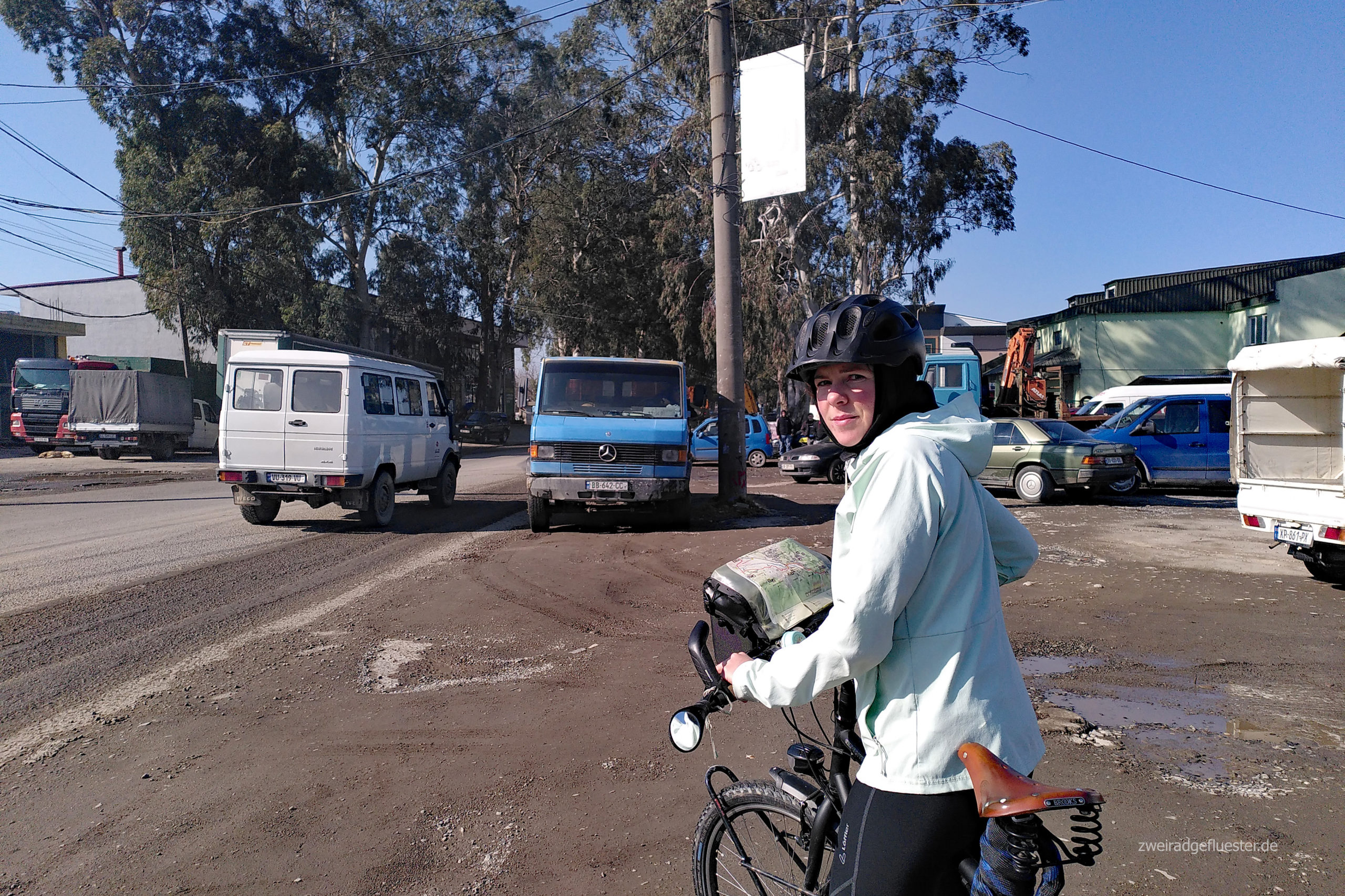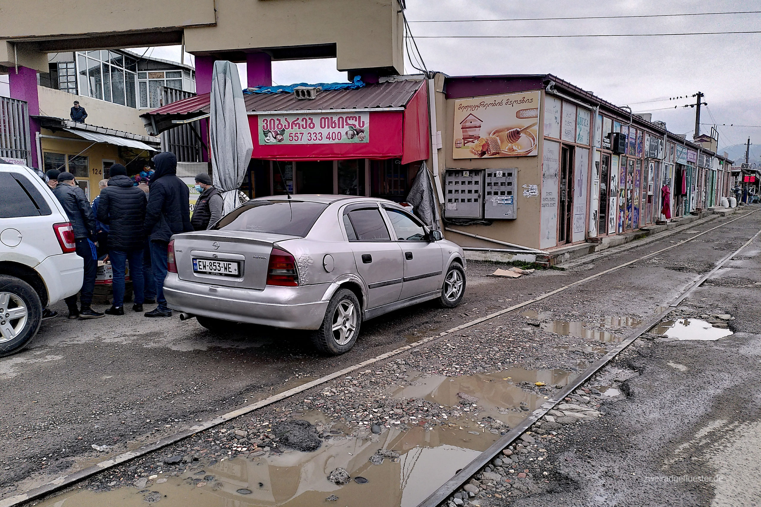Neue Schrift, neue Sprache, neue Kultur, andere Mentalitäten und ein sehr ominöses Aussehen der Autos. Die fehlenden Vorderverkleidungen der Autos haben direkt das Zeug dazu, uns gleich etwas nervös zu machen. Mal sehen, was uns hier in Georgien wohl auf der Straße so erwartet. Aber fürs Erste läuft es ganz gut.
