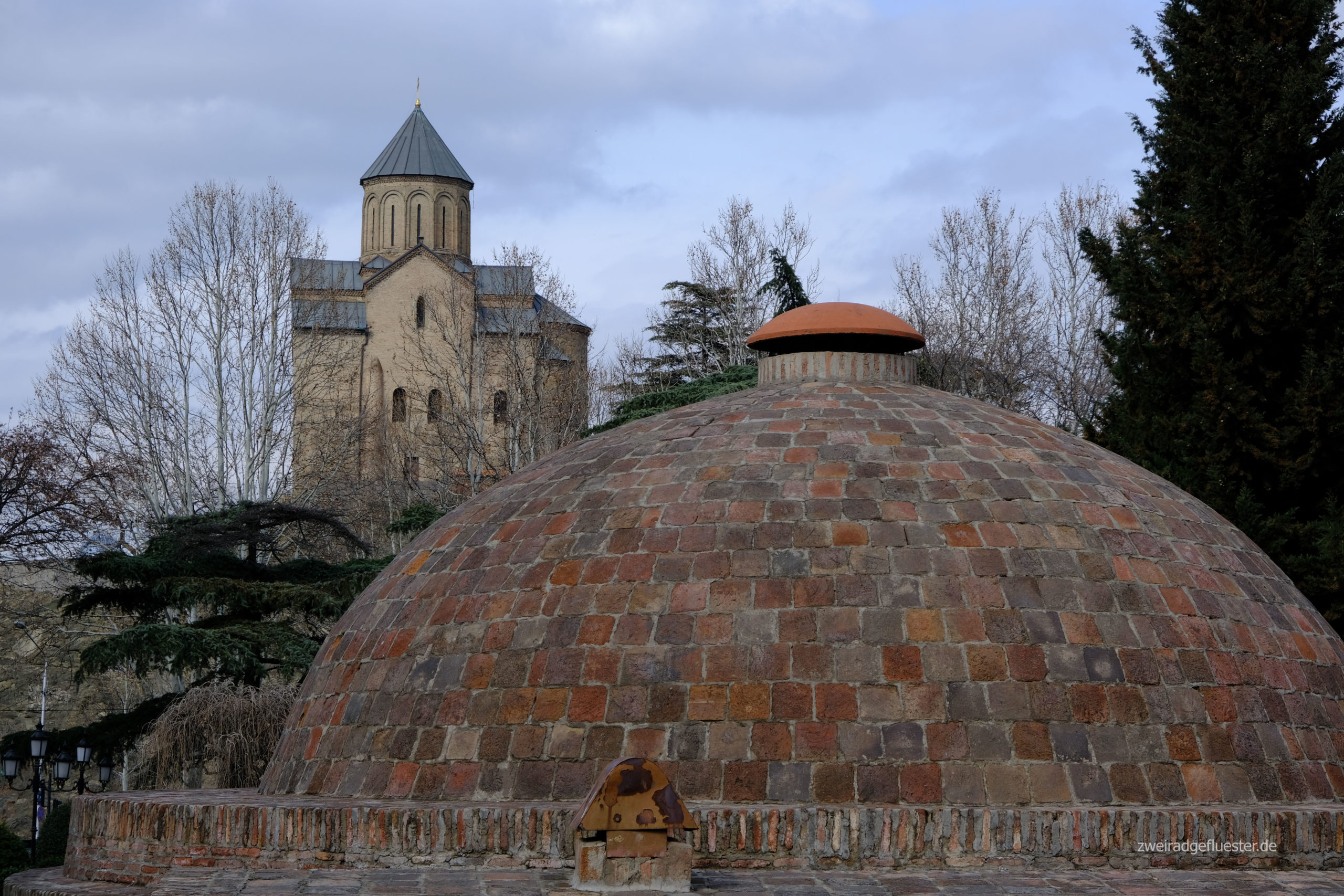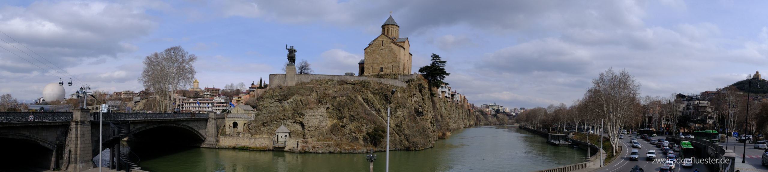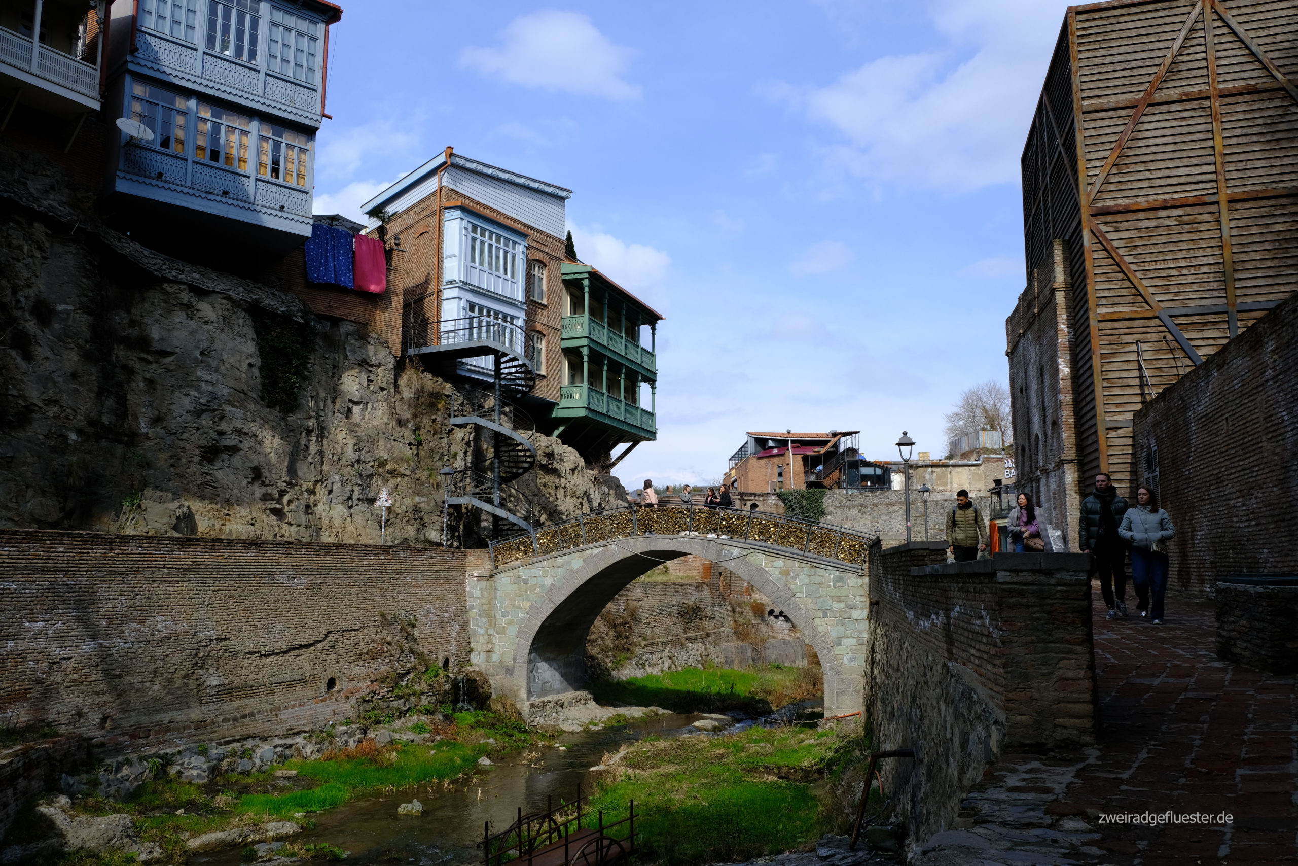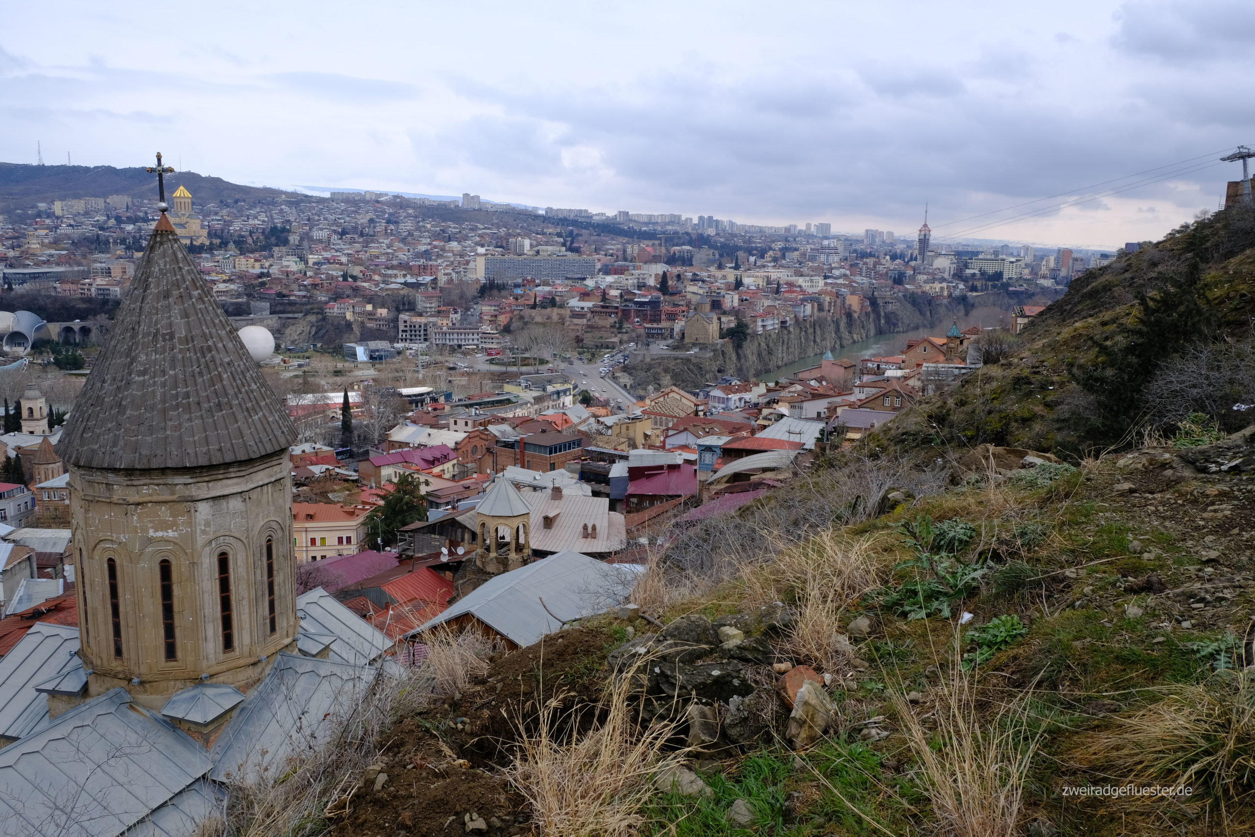 Doch es gibt noch einen Aspekt, der diese Stadt so besonders macht. Die Kura schlängelt sich teilweise canyonartig durch Tbilisi. Ein Wasserfall mitten in der Stadt schafft eine weitere grüne Oase. Die alten Gebäude stehen in einer Symbiose mit der Natur, deren volle Pracht wir nur erahnen können. Wir stellen uns diese Stadt im Frühling oder Sommer vor, wenn alles blüht, der Wein reift, die warmen Tage die Menschen auf die Straßen treiben und diese mit trubeligem Leben füllen.