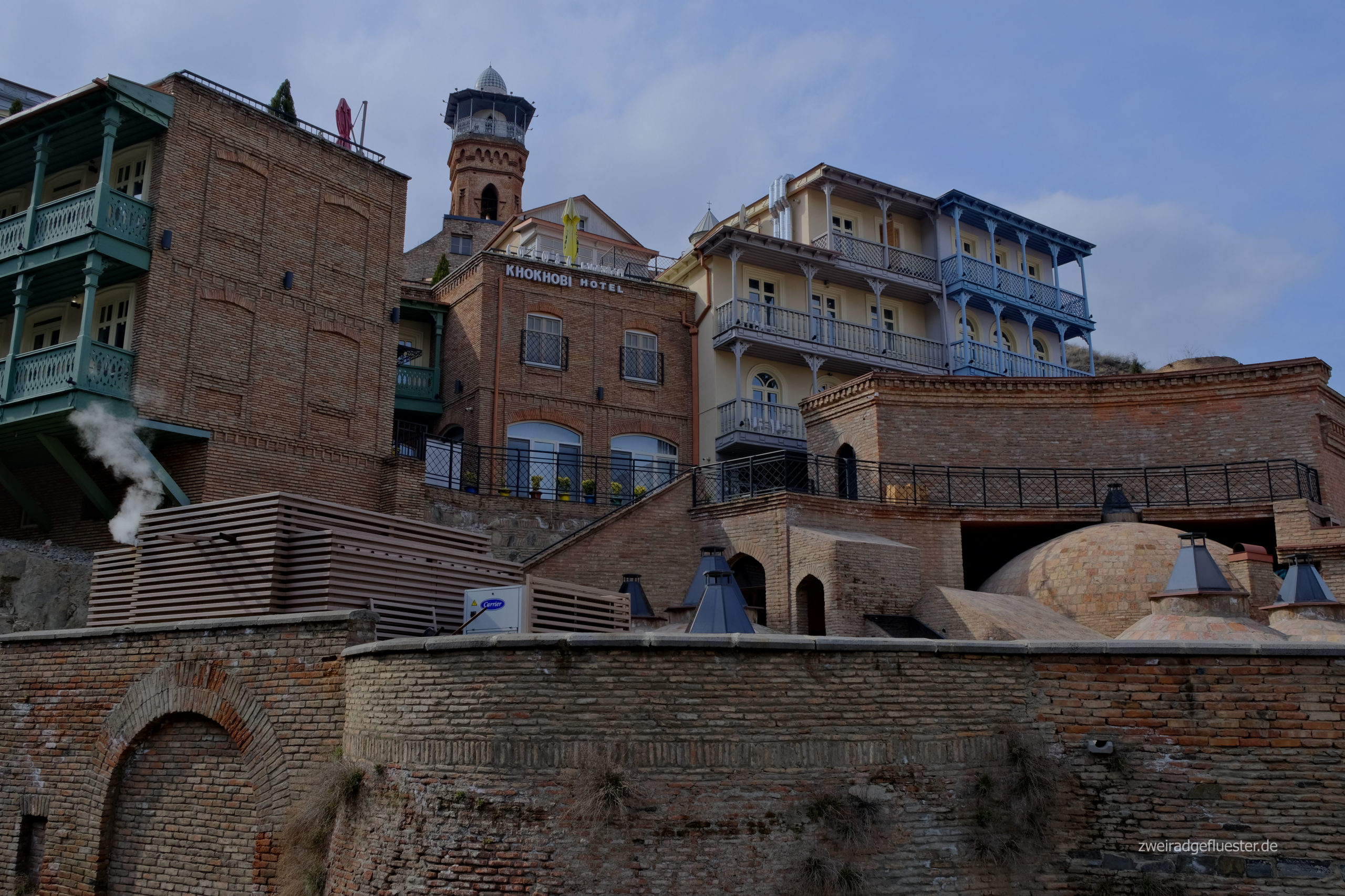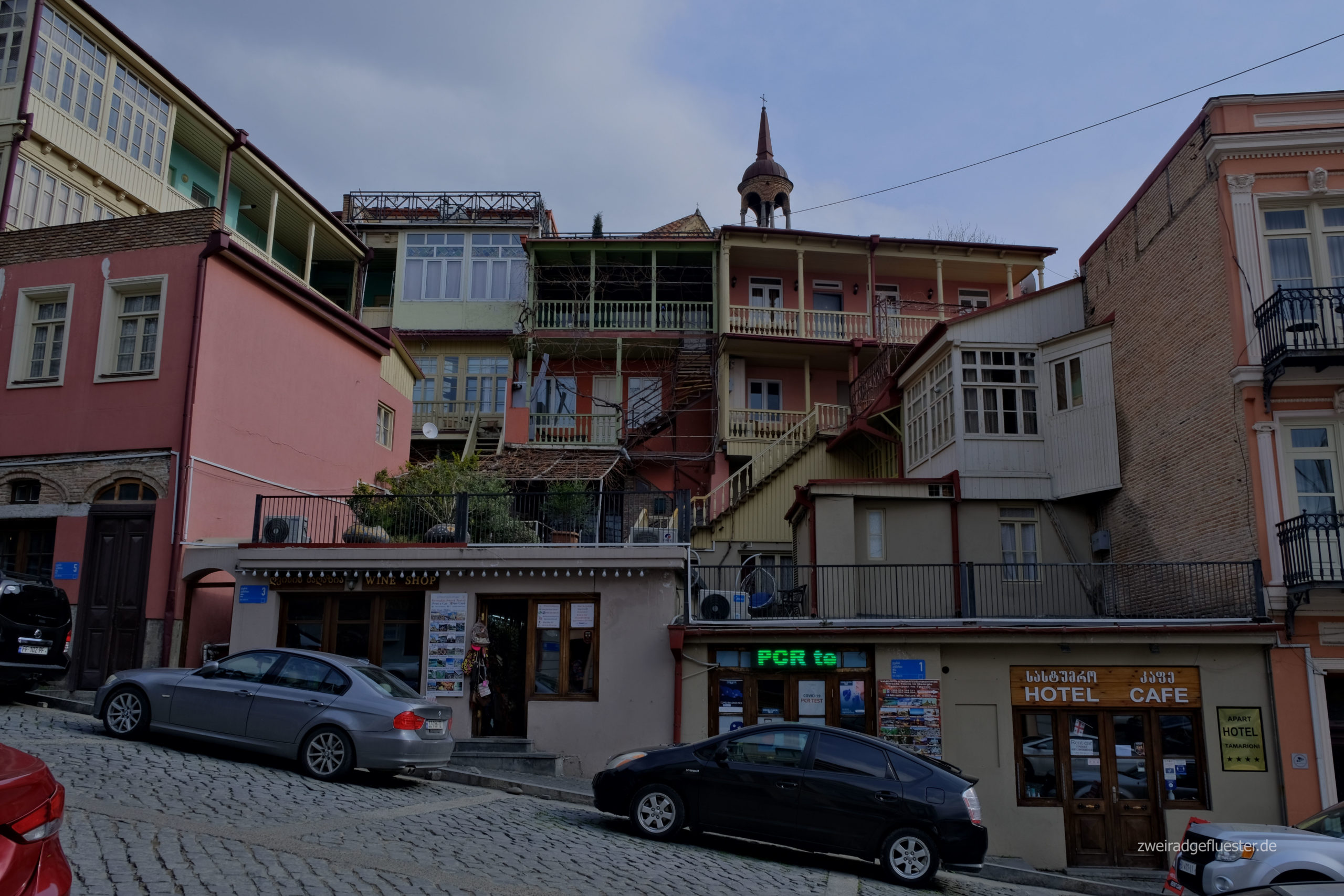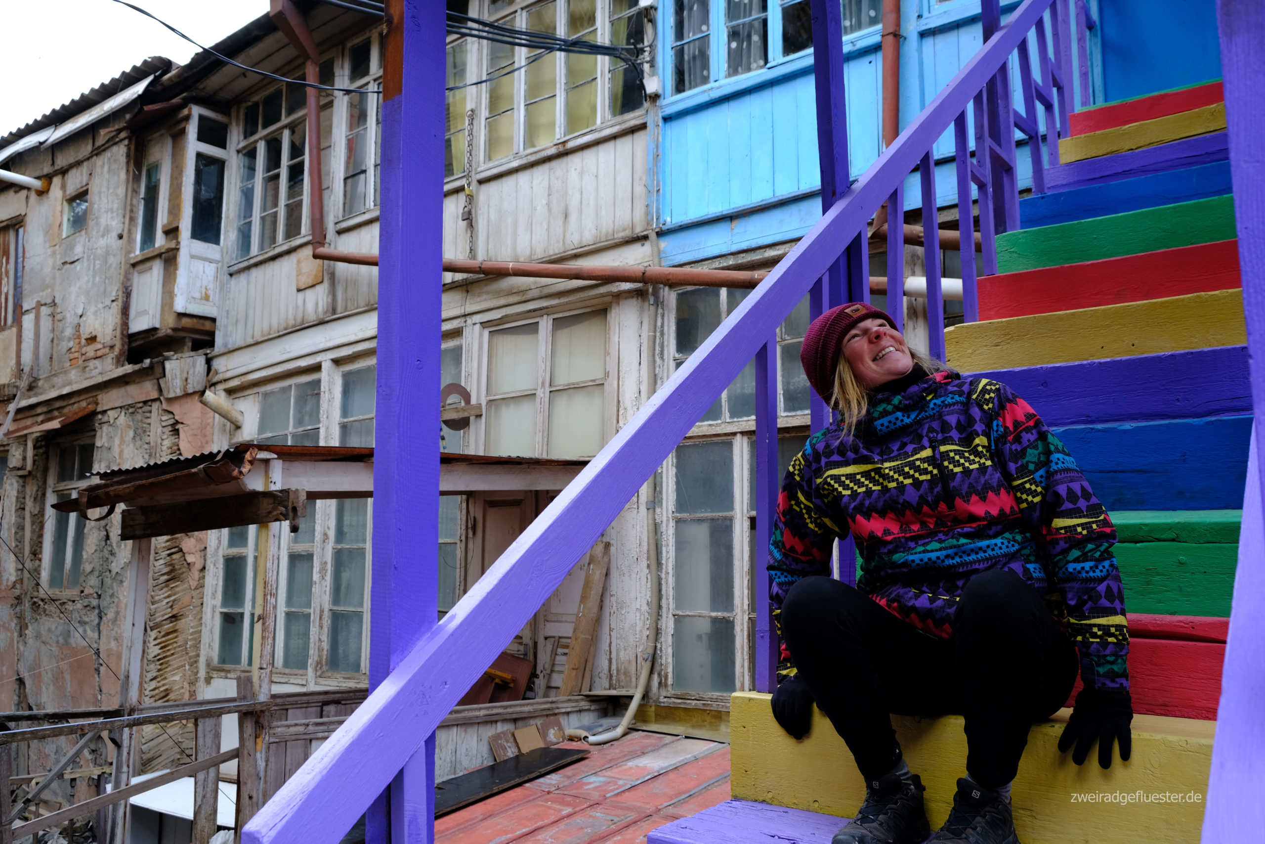 Nach einer schneereichen Zeit in Gudauri, geht es für uns wieder zurück nach Tbilisi. Schon beim ersten Mal hat uns diese Stadt verzaubert. Es liegt eine angenehme Atmosphäre in der Luft, wenn man durch die gemütlichen Gassen der Altstadt schlendert. Zwischen shabby und chic präsentiert sich die Architektur im Jugendstil und der Gründerzeit, mit all den verzierten, hölzernen Terrassen und Balkons. Die Stadt wirkt bunt, hipp und jung. Überall entdecken wir kleine Bars, Clubs und Ateliers, die ihre Kunst nicht nur auf den Innenraum beschränken.